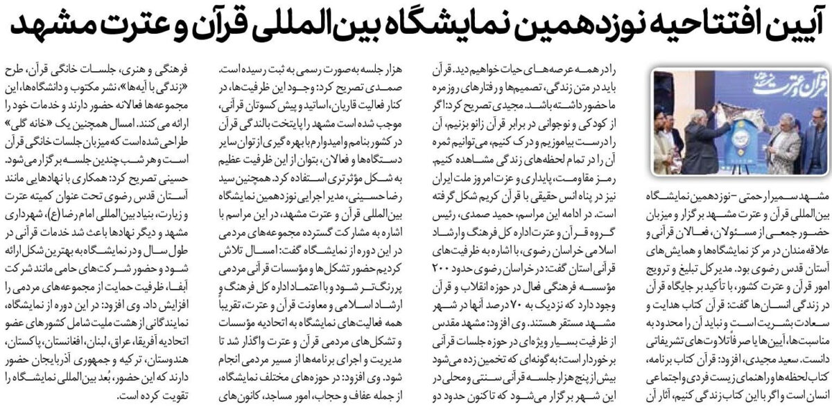 آیین افتتاحیه نوزدهمین نمایشگاه بین‌المللی قرآن و عترت مشهد