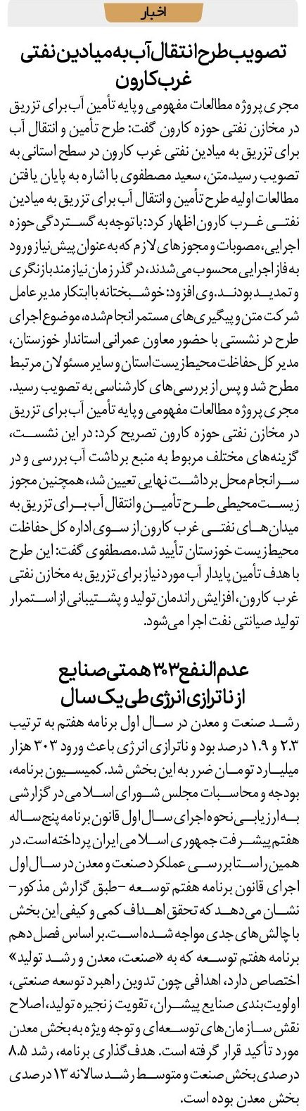تصویب طرح انتقال آب به میادین نفتی غرب کارون