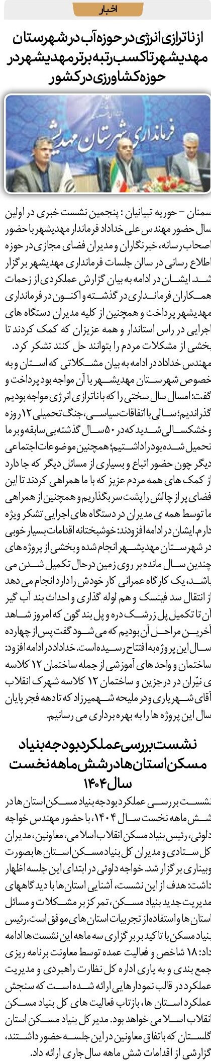 از ناترازی انرژی در حوزه آب در شهرستان مهدیشهر تا کسب رتبه برتر مهدیشهر در حوزه کشاورزی در کشور