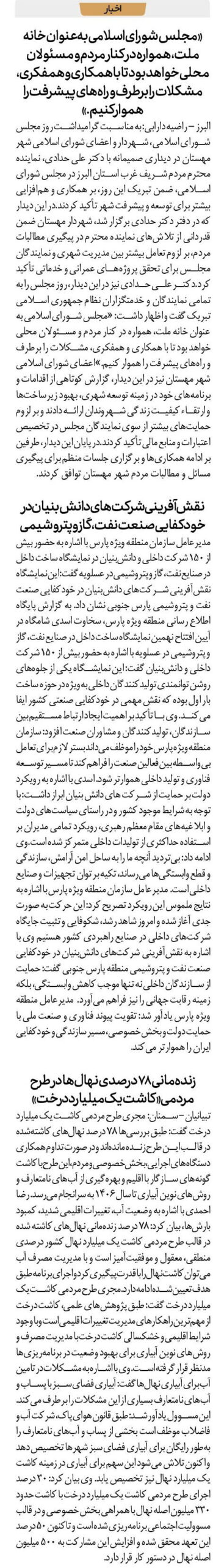 «مجلس شورای اسلامی به عنوان خانه ملت، همواره در کنار مردم و مسئولان محلی خواهد بود تا با همکاری و همفکری، مشکلات را برطرف و راه‌های پیشرفت را هموار کنیم.»