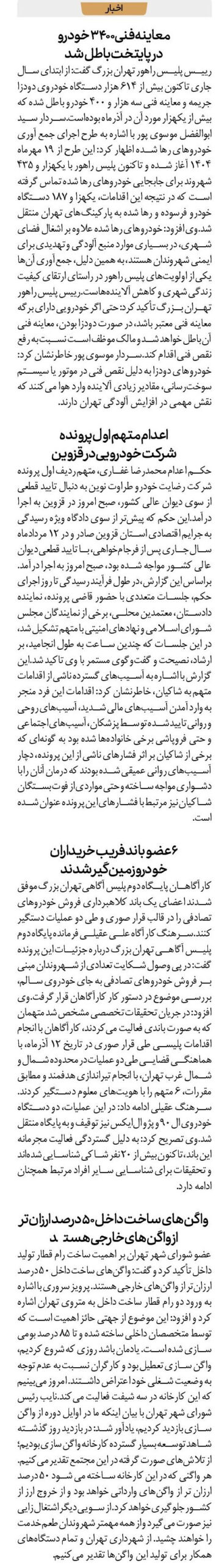 رییس پلیس راهور تهران بزرگ گفت: از ابتدای سال جاری تاکنون بیش از ۶۱۴ هزار دستگاه خودروی دودزا جریمه و معاینه فنی سه هزار و ۴۰۰ خودرو باطل شده که بیش از یکهزار مورد آن در آذرماه بودهاست.سردار سید ابوالفضل موسوی پور با اشاره به طرح اجرای جمع آوری خودروهای رها شده اظهار کرد: این طرح از ۱۹ مهرماه ۱۴۰۴ آغاز شده و تاکنون پلیس راهور با یکهزار و ۴۳۵ شهروند برای جابجایی خودروهای رها شده تماس گرفته است که در نتیجه این اقدامات، یکهزا و ۱۸۷ دستگاه خودرو فرسوده و رها شده به پارکینگهای تهران منتقل شد.وی افزود: خودروهای رها شده علاوه بر اشغال فضای شهری، در بسیاری موارد منبع آلودگی و تهدیدی برای ایمنی شهروندان هستند، به همین دلیل، جمعآوری آنها یکی از اولویتهای پلیس راهور در راستای ارتقای کیفیت زندگی شهری و کاهش آلایندههاست.رییس پلیس راهور تهران بزرگ تأکید کرد: حتی اگر خودرویی دارای برگه معاینه فنی معتبر باشد، در صورت دودزا بودن، معاینه فنی آن باطل خواهد شد و مالک موظف است نسبت به رفع نقص فنی اقدام کند.سردار موسوی پور خاطرنشان کرد: خودروهای دودزا به دلیل نقص فنی در موتور یا سیستم سوخترسانی، مقادیر زیادی آلاینده وارد هوا میکنند که نقش مهمی در افزایش آلودگی تهران دارند.