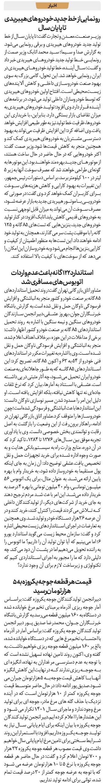 وزیر صنعت، معدن و تجارت گفت: تا پایان سال از خط تولید جدید خودروهای هیبریدی و برقی رونمایی میشود.به گزارش صدا و سیما؛ سید محمد اتابک وزیر صمت از رونمایی خط تولید جدید خودروهای هیبریدی خبر داد و گفت: سال آینده، خط تولید خودروهای هیبریدی در ایران رونمایی خواهد شد. این تحول، گامی بزرگ به سوی بهبود صنعت خودروسازی داخلی و کاهش آلایندههای زیستمحیطی است. افتتاح اولین خودروهای هیبریدی که توسط خودروسازان داخلی تولید میشود، در برنامههای آینده قرار دارد.وی افزود: تولید خودروهای هیبریدی به میزان تقاضای بازار بستگی دارد. بنابراین، با خریداری این خودروها، ظرفیت خط تولید نیز به طور طبیعی افزایش خواهد یافت.وی اضافه کرد: این افزایش ظرفیت میتواند به بهبود دسترسی مشتریان به خودروهای هیبریدی کمک کند و همچنین منجر به کاهش قیمتها شود.وزیر صمت گفت: اکثر خودروهایی که در حال حاضر در حال ساخت هستند، از موتورهای جدید بهرهمند خواهند بود. این موتورها به گونهای طراحی خواهند شد که مصرف سوخت آنها به زیر ۵ لیتر در ۱۰۰ کیلومتر برسد، بر اساس دستورات رئیسجمهور. این تغییرات به بهبود کارایی و کاهش هزینههای سوخت برای کاربران کمک خواهد کرد.وی گفت: در صورتی که خودرویی با موتور هیبریدی جدید به بازار عرضه شود، مصرف سوخت آن میتواند به میزان قابل توجهی نسبت به خودروهای قدیمی کاهش یابد.اتابک افزود: در کنار تولید خودروهای جدید، بنزینهایی که تستهای ۸۵ گانه و ۱۲۵ گانه را با موفقیت پشت سر میگذارند، همچنان به تولید خود ادامه خواهند داد. این تستها به منظور اطمینان از کیفیت و کارایی بنزینها انجام میشود و به خودروسازان این امکان را میدهد که از سوختهای با کیفیت بالا استفاده کنند.