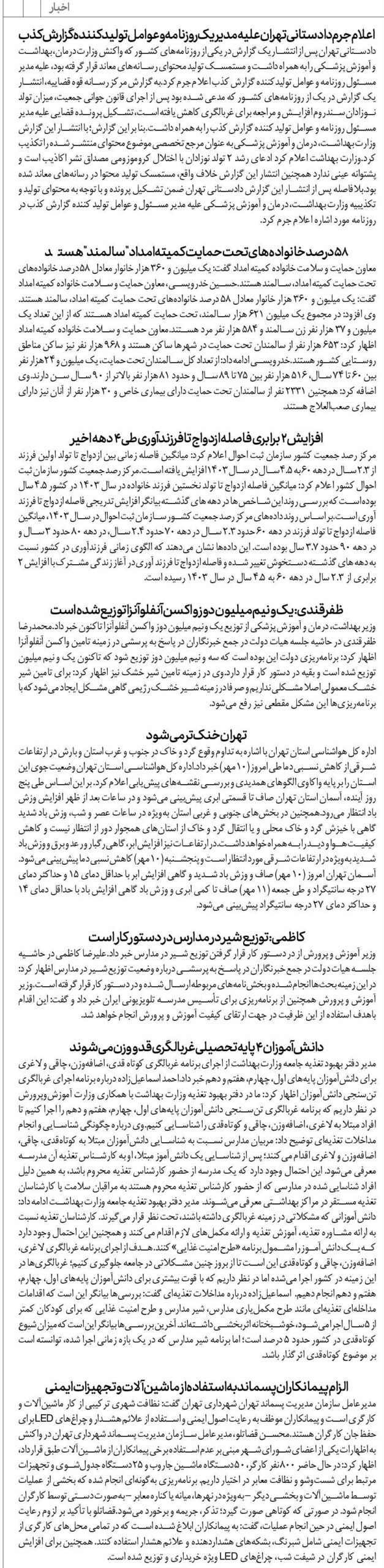 دادستانی تهران پس از انتشار یک گزارش در یکی از روزنامههای کشور که واکنش وزارت درمان، بهداشت و آموزش پزشکی را به همراه داشت و مستمسک تولید محتوای رسانههای معاند قرار گرفته بود، علیه مدیر مسئول روزنامه و عوامل تولیدکننده گزارش کذب اعلام جرم کرد.به گزارش مرکز رسانه قوه قضاییه، انتشار یک گزارش در یک از روزنامههای کشور که مدعی شده بود پس از اجرای قانون جوانی جمعیت، میزان تولد نوزادان سندروم افزایش و مراجعه برای غربالگری کاهش یافته است، تشکیل پرونده قضایی علیه مدیر مسئول روزنامه و عوامل تولید کننده گزارش کذب را به همراه داشت.بنا بر این گزارش؛ با انتشار این گزارش وزارت بهداشت، درمان و آموزش پزشکی به عنوان مرجع تخصصی موضوع محتوای منتشر شده را تکذیب کرد.وزارت بهداشت اعلام کرد ادعای رشد ۲ تولد نوزادان با اختلال کروموزومی مصداق نشر اکاذیب است و پشتوانه عینی ندارد همچنین انتشار این گزارش خلاف واقع، مستمسک تولید محتوا در رسانههای معاند شده بود.بلافاصله پس از انتشار این گزارش دادستانی تهران ضمن تشکیل پرونده و با توجه به محتوای تولید و تکذیبیه وزارت بهداشت، درمان و آموزش پزشکی علیه مدیر مسئول و عوامل تولید کننده گزارش کذب در روزنامه مورد اشاره اعلام جرم کرد.