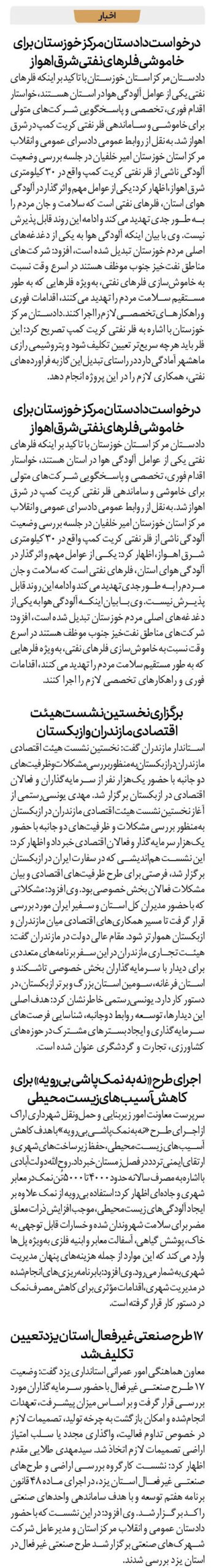 دادستان مرکز استان خوزستان با تاکید بر اینکه فلرهای نفتی یکی از عوامل آلودگی هوا در استان هستند، خواستار اقدام فوری، تخصصی و پاسخگویی شرکتهای متولی برای خاموشی و ساماندهی فلر نفتی کریت کمپ در شرق اهواز شد. به نقل از روابط عمومی دادسرای عمومی و انقلاب مرکز استان خوزستان امیر خلفیان در جلسه بررسی وضعیت آلودگی ناشی از فلر نفتی کریت کمپ واقع در ۳۰ کیلومتری شرق اهواز، اظهار کرد: یکی از عوامل مهم و اثرگذار در آلودگی هوای استان، فلرهای نفتی است که سلامت و جان مردم را به طور جدی تهدید میکند و ادامه این روند قابل پذیرش نیست. وی با بیان اینکه آلودگی هوا به یکی از دغدغههای اصلی مردم خوزستان تبدیل شده است، افزود: شرکتهای مناطق نفتخیز جنوب موظف هستند در اسرع وقت نسبت به خاموشسازی فلرهای نفتی، بهویژه فلرهایی که به طور مستقیم سلامت مردم را تهدید میکنند، اقدامات فوری و راهکارهای تخصصی لازم را اجرا کنند.