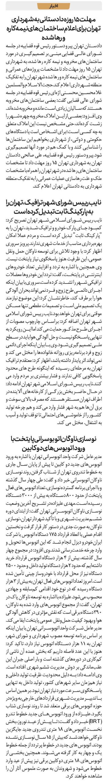 دادستان تهران پیرو دستور رئیس قوه قضاییه در جلسه شورای عالی قضایی مبنی بر تصمیمگیری در مورد ساختمانهای مخروبه و نیمه کاره رها شده، به شهرداری تهران ۱۵ روز مهلت داد تا مشخصات پروژههای عمرانی و ساختمانهای نیمه کاره و رها شده شهر تهران را به تفکیک منطقه شهرداری اعلام کند.حجت الاسلام والمسلمین غلامحسین محسنی اژهای رئیس قوه قضاییه در جلسه شورای عالی قضایی گفت: بعضی ساختمانهای مخروبه هستند که سالیان زیادی است مانده و مخروبه شدهاند.وی افزود: بعضی از این املاک مخروبه چهره شهر را زشت کردهاند، حتی مشخص نیست این املاک متعلق به چه کسی است؛ برای اشخاص است یا دستگاههای حکومتی و دولتی، از شهرداری بخواهیم این ساختمانها را شناسایی کنند و با کمک هم در مورد آنها تصمیمگیری شود.پیرو دستور رئیس قوه قضاییه، علی صالحی دادستان تهران به شهرداری تهران ۱۵ روز مهلت داد تا مشخصات ساختمانهای رها شده در شهر تهران را همراه با مشخصات ملک و علت رهاسازی عملیات عمرانی را به تفکیک منطقه شهرداری به دادستانی تهران اعلام کند.