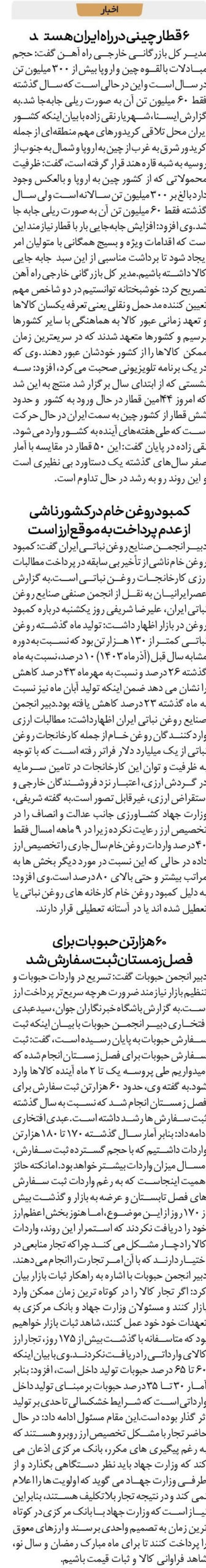 ۶ قطار چینی در راه ایران هستند