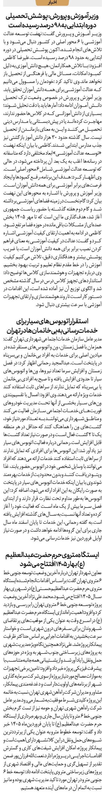 وزیر آموزش و پرورش گفت: نهضت توسعه عدالت آموزشی با ۶ محور اصلی در کشور دنبال میشود و با تلاشهای انجام شده، اکنون پوشش تحصیلی در دوره ابتدایی به حدود ۹۸ درصد رسیده است.علیرضا کاظمی افزود: با تلاش همکارانمان، هیچ دانشآموزی به دلیل کمبود امکانات، مسائل مالی یا فرهنگی از تحصیل باز نخواهد ماند.وی تاکید کرد :خودمان را مسوول میدانیم که عدالت آموزشی برای همه دانشآموزان تحقق یابد.وزیر آموزش و پرورش در خصوص وضعیت ترک تحصیل دانش آموزان ادامه داد: آمارها باید با دقت تحلیل شوند؛ بسیاری از دانشآموزانی که در کلاسها حضور ندارند، مهاجرت کردهاند یا در پیشدبستانی یا مدارس دینی تحصیل میکنند و این به معنای بازماندن از تحصیل نیست. سال گذشته حدود ۳۰ هزار دانشآموز بازگشتی نیز جذب مدارس ابتدایی شدند.کاظمی با بیان اینکه نهضت «توسعه عدالت آموزشی» ابعاد مختلفی دارد که متاسفانه در رسانهها اغلب به یک بعد آن پرداخته میشود، در حالی که توسعه عدالت آموزشی شامل ۶ محور اصلی است.وی اظهار کرد: هدف این برنامه، رفع کمبودها و ایجاد فرصتهای برابر آموزشی برای همه دانشآموزان است.وزیر آموزش و پرورش با اشاره به محورهای این نهضت بیان کرد: گام نخست در زمینه فضاهای آموزشی برداشته شد و گام دوم هفته گذشته با حضور ریاست جمهوری آغاز شد، هدفگذاری ما این است که تا مهر ۱۴۰۵ بخش عمدهای از مشکلات باقیمانده در حوزه فضا مرتفع شود.کاظمی در ادامه به اهمیت ارتقای کیفیت آموزشی اشاره کرد و گفت: عدالت در کیفیت آموزشی به معنای فراهم کردن نصیب برابر برای همه دانشآموزان است، با ضریب پوشش بیشتر و هدفگذاری دقیق، تلاش میکنیم کیفیت آموزش را در خط مقدم نظام تعلیم و تربیت بهبود بخشیم.وی درباره تجهیزات و هوشمندسازی کلاسها توضیح داد: استانداردهای تجهیز کلاس درس در سال گذشته مشخص شد و الگوی توزیع آن نیز آماده شده است، این اقدامات در دستور کار است تا روند هوشمندسازی و ارتقای تجهیزات آموزشی با سرعت بیشتری دنبال شود.