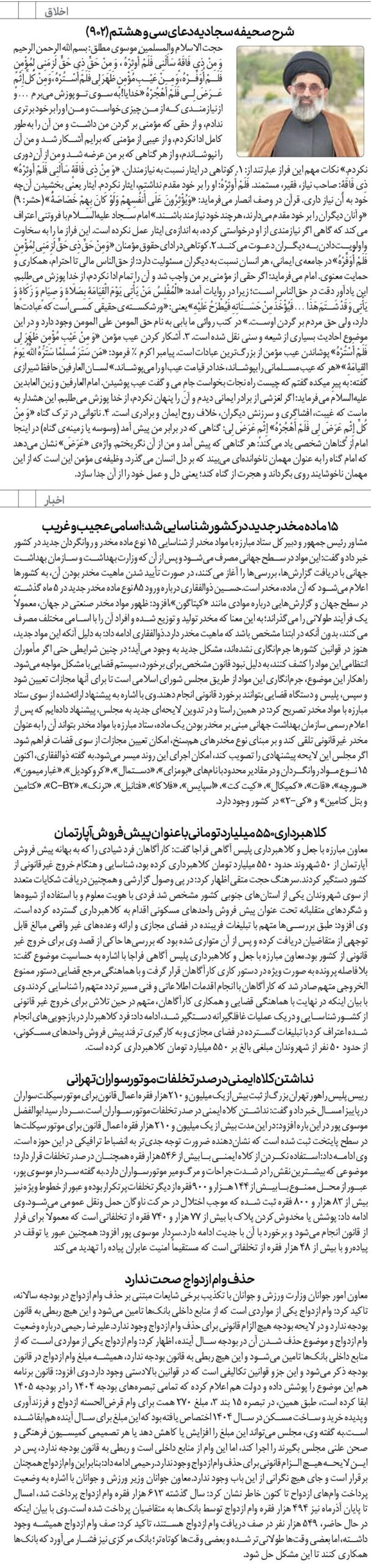 حجت الاسلام والمسلمین موسوی مطلق: بسم الله الرحمن الرحیم وَ مِنْ ذِي فَاقَةٍ سَأَلَنِي فَلَمْ أُوثِرْهُ ، وَ مِنْ حَقِّ ذِي حَقٍّ لَزِمَنِي لِمُؤْمِنٍ فَلَمْ أُوَفِّرْهُ ، وَ مِنْ عَيْبِ مُؤْمِنٍ ظَهَرَ لِي فَلَمْ أَسْتُرْهُ ، وَ مِنْ كُلِّ إِثْمٍ عَرَضَ لِي فَلَمْ أَهْجُرْهُ «خدایا! به سوی تو پوزش میبرم … و از نیازمندی که از من چیزی خواست و من او را بر خود برتری ندادم، و از حقی که مؤمنی بر گردن من داشت و من آن را بهطور کامل ادا نکردم، و از عیبی از مؤمنی که برایم آشکار شد و من آن را نپوشاندم، و از هر گناهی که بر من عرضه شد و من از آن دوری نکردم.» نکات مهم این فراز عبارتند از: ۱. کوتاهی در ایثار نسبت به نیازمندان. «وَ مِنْ ذِي فَاقَةٍ سَأَلَنِي فَلَمْ أُوثِرْهُ» ذِي فَاقَةٍ: صاحب نیاز، فقیر، مستمند. فَلَمْ أُوثِرْهُ: او را بر خود مقدم نداشتم، ایثار نکردم. ایثار یعنی بخشیدن آنچه خود به آن نیاز داری. قرآن در وصف انصار میفرماید: «وَيُؤْثِرُونَ عَلَى أَنفُسِهِمْ وَلَوْ كَانَ بِهِمْ خَصَاصَةٌ» (حشر: ۹) «و آنان دیگران را بر خود مقدم میدارند، هرچند خود نیازمند باشند.» امام سجاد علیهالسلام با فروتنی اعتراف میکند که گاهی اگر نیازمندی از او درخواستی کرده، به اندازهی ایثار عمل نکرده است. این فراز ما را به سخاوت و اولویت دادن به دیگران دعوت میکند. ۲. کوتاهی در ادای حقوق مؤمنان «وَ مِنْ حَقِّ ذِي حَقٍّ لَزِمَنِي لِمُؤْمِنٍ فَلَمْ أُوَفِّرْهُ» در جامعهی ایمانی، هر انسان نسبت به دیگران مسئولیت دارد: از حقالناس مالی تا احترام، همکاری و حمایت معنوی. امام میفرماید: اگر حقی از مؤمنی بر من واجب شد و آن را تمام ادا نکردم، از خدا پوزش میطلبم. این یادآور دقت در حقالناس است؛ زیرا در روایات آمده: «الْمُفْلِسُ مَنْ يَأْتِي يَوْمَ الْقِيَامَةِ بِصَلَاةٍ وَ صِيَامٍ وَ زَكَاةٍ وَ يَأْتِي وَ قَدْ شَتَمَ هَذَا… فَيُؤْخَذُ مِنْ حَسَنَاتِهِ فَيُطْرَحُ عَلَيْهِ» یعنی: «ورشکستهی حقیقی کسی است که عبادتها دارد، ولی حق مردم بر گردن اوست.» در کتب روائی ما بابی به نام حق المومن علی المومن وجود دارد و در این موضوع احادیث بسیاری از شیعه و سنی نقل شده است. ۳. آشکار کردن عیب مؤمن «وَ مِنْ عَيْبِ مُؤْمِنٍ ظَهَرَ لِي فَلَمْ أَسْتُرْهُ» پوشاندن عیب مؤمن از بزرگترین عبادات است. پیامبر اکرم ﷺ فرمود: «مَن سَتَرَ مُسلِمًا سَتَرَهُ اللَّهُ يَومَ القِيامَةِ» «هر که عیب مسلمانی را بپوشاند، خدا در قیامت عیب او را میپوشاند.» لسان العارفین حافظ شیرازی گفته: به پیرِ میکده گفتم که چیست راه نجات بخواست جامِ می و گفت عیب پوشیدن. امام العارفین و زین العابدین علیهالسلام میفرماید: اگر لغزشی از برادر ایمانی دیدم و آن را پنهان نکردم، از خدا پوزش میطلبم. این هشدار به ماست که غیبت، افشاگری و سرزنش دیگران، خلاف روح ایمان و برادری است. ۴. ناتوانی در ترک گناه «وَ مِنْ كُلِّ إِثْمٍ عَرَضَ لِي فَلَمْ أَهْجُرْهُ» إِثْمٍ عَرَضَ لِي: گناهی که در برابر من پیش آمد (وسوسه یا زمینهی گناه) در اینجا امام از گناهان شخصی یاد میکند: هر گناهی که پیش آمد و من از آن نگریختم. واژهی «عَرَضَ» نشان میدهد که امام گناه را به عنوان مهمان ناخواندهای میبیند که بر دل انسان میگذرد. وظیفهی مؤمن این است که از این مهمان ناخوشایند روی بگرداند و هجرت از گناه کند؛ یعنی دل و عمل خود را از آن جدا سازد.