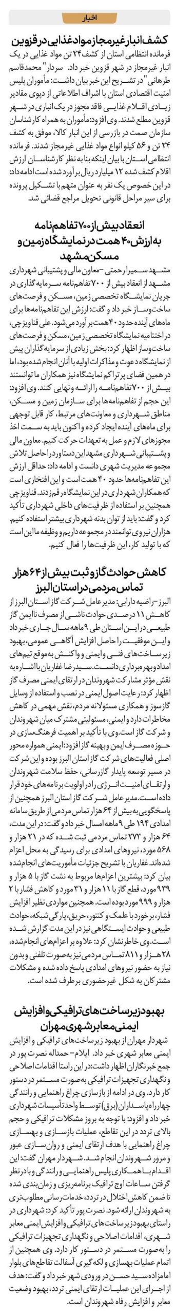 البرز-راضیه دارابی: مدیرعامل شرکت گاز استان البرز از کاهش ۱۱ درصدی حوادث ناشی از مصرف ناایمن گاز طبیعی در این استان طی ۹ ماهه سال جاری خبر داد و این موفقیت را حاصل افزایش آگاهی عمومی، بهبود زیرساختهای فنی و ایمنی و واکنش بهموقع تیمهای امداد و بهرهبرداری دانست. سیدرضا غفاریان با اشاره به نقش مؤثر مشارکت شهروندان در ارتقای ایمنی مصرف گاز اظهار کرد: رعایت اصول ایمنی در نصب و استفاده از وسایل گازسوز و همکاری مسئولانه مردم، نقش مهمی در کاهش مخاطرات دارد و ایمنی، مسئولیتی مشترک میان شهروندان و شرکت گاز است.وی با تأکید بر اهمیت فرهنگسازی در حوزه مصرف ایمن و بهینه گاز افزود: ایمنی همواره محور اصلی فعالیتهای شرکت گاز استان البرز بوده و این شرکت در مسیر توسعه پایدار گازرسانی، حفظ سلامت شهروندان و ارتقای امنیت انرژی را در اولویت برنامههای خود قرار داده است.مدیرعامل شرکت گاز استان البرز همچنین از پاسخگویی به بیش از ۶۴ هزار تماس مردمی از طریق سامانه امدادی ۱۹۴ طی ۹ ماهه امسال خبر داد و گفت: در این مدت، ۶۴ هزار و ۲۷۳ تماس مردمی ثبت شده که در ۲۱ هزار و ۵۶۸ مورد، نیروهای امدادی برای رسیدگی به محل اعزام شدهاند.غفاریان با تشریح جزئیات مأموریتهای انجامشده بیان کرد: بیشترین اعزامها مربوط به نشت گاز با ۵ هزار و ۹۳۹ مورد، قطع گاز با ۱۱ هزار و ۳۱ مورد و کاهش فشار با ۲ هزار و ۹۹۹ مورد بوده است. همچنین مواردی نظیر افزایش فشار، برخورد با علمک و کنتور، حریق، پارگی شبکه، حوادث طبیعی و حوادث ایستگاهی نیز در این مدت گزارش شده است.وی خاطرنشان کرد: علاوه بر اعزامهای انجامشده، ۲۸ هزار و ۸۱۱ تماس مردمی نیز بهصورت تلفنی و بدون نیاز به حضور نیروهای امدادی پاسخ داده شده و مشکلات مشترکان به شکل غیرحضوری برطرف شده است.