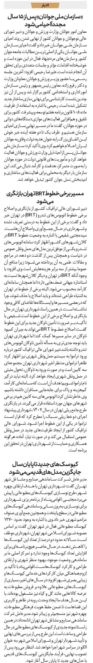 دبیر شورای عالی ترافیک کشور از بازنگری و اصلاح برخی خطوط اتوبوسهای تندرو (BRT) در تهران خبر داد و گفت: برخی از این خطوط به درستی تعریف نشده و شهرداری در حال جمعآوری و اصلاح آنهاست.سیدمجتبی شفیعی با اشاره به وضعیت خطوط BRT در کلانشهرهای کشور اظهار کرد: سامانه اتوبوسهای تندرو یکی از موفقترین مدلهای حملونقل عمومی در دنیاست و همچنان پس از گذشت دو دهه، در مراجع و مقالات علمی به آن پرداخته میشود؛ زیرا منافع آن عموما بیشتر از سه برابر هزینههایش است.وی افزود: با وجود آنکه BRT در تهران و دیگر کلانشهرها نسبت به استاندارد جهانی ضعفهایی دارد؛ اما همچنان سامانهای کارآمد محسوب میشود. البته برخی از خطوط در تهران به اشتباه طراحی شدهاند و باید اصلاح یا حذف شوند، چرا که در بعضی مسیرها و ایستگاهها تقاضای کافی وجود نداشته است. در همین راستا، شهرداری تهران در حال بازنگری و اصلاح برخی از این خطوط است.شفیعی با تأکید بر ضرورت تأمین ناوگان جدید برای این خطوط گفت: اصلاح خطوط BRT میتواند به جبران کمبود ناوگان در سایر مسیرها کمک کند؛ اما شهرداری تهران باید توجه جدیتری به مسأله تأمین ناوگان اتوبوسهای تندرو داشته باشد.دبیر شورای عالی ترافیک کشور درباره ورود تراموا به سیستم حملونقل شهری نیز اظهار کرد: ظاهرا تراموای مدنظر اخیر شهرداری تهران مجموعهای سه کابین است و در صورت ورود به ناوگان، تحول مثبتی در حملونقل شهری ایجاد خواهد کرد. البته نباید درگیر نام تراموا شویم؛ هدف آن است که سامانهای کارآمد، کمهزینه و پاک برای جابهجایی مسافران داشته باشیم.وی خاطرنشان کرد: اتوبوسهای سه کابین هم در برخی شهرهای جهان مورد استفاده قرار میگیرند. در بازنگری طرح جامع ریلی تهران در سال ۱۴۰۲، شهرداری پیشنهاد اجرای دو خط ریلی سبک را مطرح کرد که قرار است تراموا در یکی از این خطوط اجرا شود. شورای عالی ترافیک کشور از ایجاد ظرفیتهای جدید در حملونقل عمومی استقبال میکند و در صورت نیاز، آماده هرگونه همکاری و حمایت از شهرداری تهران در تحقق این برنامه است.