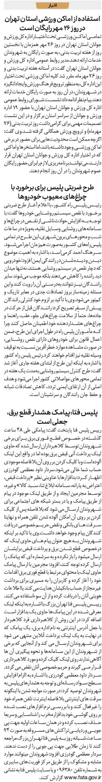 استفاده از اماکن ورزشی استان تهران در روز ۲۶ مهر رایگان است