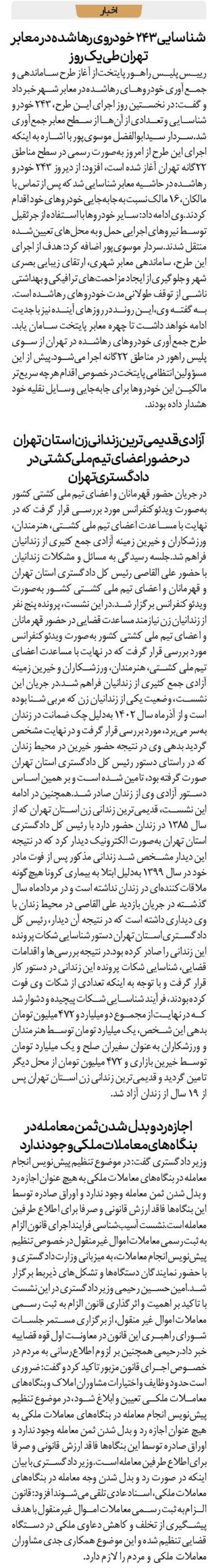 رییس پلیس راهور پایتخت از آغاز طرح ساماندهی و جمعآوری خودروهای رهاشده در معابر شهر خبر داد و گفت: در نخستین روز اجرای این طرح، ۲۴۳ خودرو شناسایی و تعدادی از آنها از سطح معابر جمعآوری شد.سردار سیدابوالفضل موسویپور با اشاره به اینکه اجرای این طرح از امروز بهصورت رسمی در سطح مناطق ۲۲گانه تهران آغاز شده است، افزود: از دیروز ۲۴۳ خودرو رهاشده در حاشیه معابر شناسایی شد که پس از تماس با مالکان، ۱۶ مالک نسبت به جابهجایی خودروهای خود اقدام کردند.وی ادامه داد: سایر خودروها با استفاده از جرثقیل توسط نیروهای اجرایی حمل و به محلهای تعیینشده منتقل شدند.سردار موسویپور اضافه کرد: هدف از اجرای این طرح، ساماندهی معابر شهری، ارتقای زیبایی بصری شهر و جلوگیری از ایجاد مزاحمتهای ترافیکی و بهداشتی ناشی از توقف طولانیمدت خودروهای رهاشده است.به گفته وی، این روند در روزهای آینده نیز با جدیت ادامه خواهد داشت تا چهره معابر پایتخت سامان یابد.طرح جمعآوری خودروهای رهاشده در تهران از سوی پلیس راهور در مناطق ۲۲گانه اجرا میشود.پیش از این مسؤولین انتظامی پایتخت در خصوص اقدام هرچه سریعتر مالکین این خودروها برای جابهجایی وسایل نقلیه خود هشدار داده بودند.