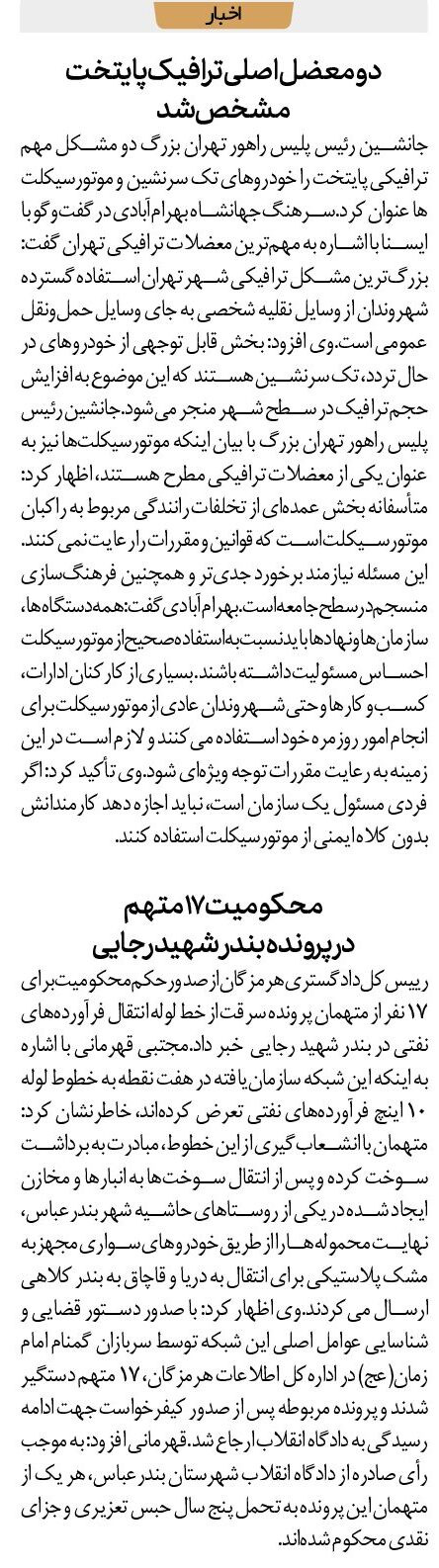 رییسکل دادگستری هرمزگان از صدور حکم محکومیت برای ۱۷ نفر از متهمان پرونده سرقت از خط لوله انتقال فرآوردههای نفتی در بندر شهید رجایی خبر داد.مجتبی قهرمانی با اشاره به اینکه این شبکه سازمانیافته در هفت نقطه به خطوط لوله ۱۰ اینچ فرآوردههای نفتی تعرض کردهاند، خاطرنشان کرد: متهمان با انشعابگیری از این خطوط، مبادرت به برداشت سوخت کرده و پس از انتقال سوختها به انبارها و مخازن ایجاد شده در یکی از روستاهای حاشیه شهر بندرعباس، نهایت محمولهها را از طریق خودروهای سواری مجهز به مشک پلاستیکی برای انتقال به دریا و قاچاق به بندر کلاهی ارسال میکردند.وی اظهار کرد: با صدور دستور قضایی و شناسایی عوامل اصلی این شبکه توسط سربازان گمنام امام زمان(عج) در ادارهکل اطلاعات هرمزگان، ۱۷ متهم دستگیر شدند و پرونده مربوطه پس از صدور کیفرخواست جهت ادامه رسیدگی به دادگاه انقلاب ارجاع شد.قهرمانی افزود: به موجب رأی صادره از دادگاه انقلاب شهرستان بندرعباس، هر یک از متهمان این پرونده به تحمل پنج سال حبس تعزیری و جزای نقدی محکوم شدهاند.