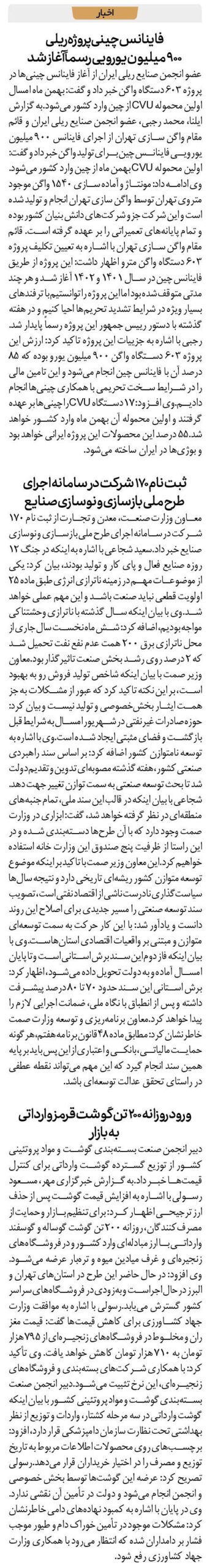دبیر انجمن صنعت بستهبندی گوشت و مواد پروتئینی کشور از توزیع گسترده گوشت وارداتی برای کنترل قیمتها خبر داد.به گزارش خبرگزاری مهر، مسعود رسولی با اشاره به افزایش قیمت گوشت پس از حذف ارز ترجیحی اظهار کرد: برای تنظیم بازار و حمایت از مصرفکنندگان، روزانه ۲۰۰ تن گوشت گوساله و گوسفند وارداتی با ارز مبادلهای وارد کشور و در فروشگاههای زنجیرهای و غرف میادین میوه و ترهبار عرضه میشود.وی افزود: در حال حاضر این طرح در استانهای تهران و البرز در حال اجراست و بهزودی در فروشگاههای سراسر کشور گسترش مییابد.رسولی با اشاره به موافقت وزارت جهاد کشاورزی برای کاهش قیمتها گفت: قیمت مغز ران و مخلوط در فروشگاههای زنجیرهای از ۷۹۵ هزار تومان به ۷۱۰ هزار تومان کاهش خواهد یافت. وی تأکید کرد: با همکاری شرکتهای بستهبندی و فروشگاههای زنجیرهای، این نرخ تثبیت میشود.دبیر انجمن صنعت بستهبندی گوشت و مواد پروتئینی کشور با بیان اینکه گوشت وارداتی در سه مرحله کشتار، واردات و توزیع از نظر بهداشتی تحت نظارت سازمان دامپزشکی قرار دارد، افزود: برچسبهای روی محصولات اطلاعات مربوط به تاریخ توزیع و مصرف را در اختیار خریداران قرار میدهد.رسولی تصریح کرد: عرضه این گوشتها توسط بخش خصوصی و انجمن انجام میشود و دولت در تأمین آن نقشی ندارد. وی در پایان با اشاره به کمبود نهادههای دامی خاطرنشان کرد: مشکلات موجود در تأمین خوراک دام و طیور موجب فشار بر دامداران شده که انتظار میرود با همکاری وزارت جهاد کشاورزی رفع شود.