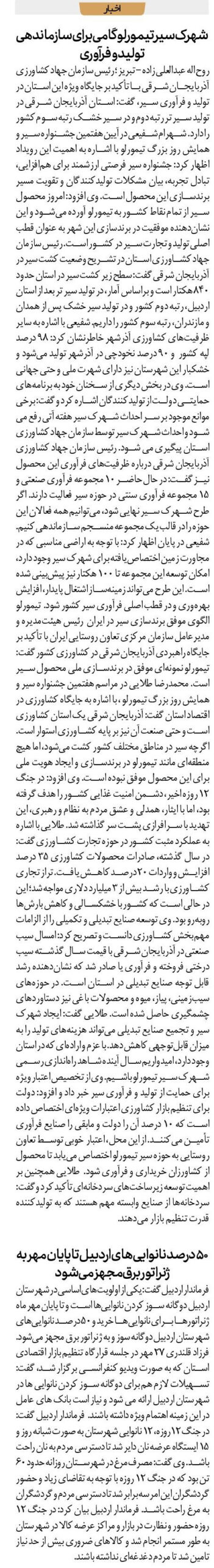 شهرک سیر تیمورلو گامی برای سازماندهی تولید و فرآوری