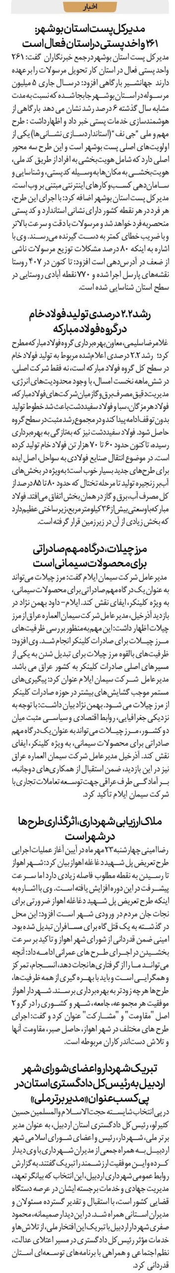 مدیرکل پست استان بوشهر: