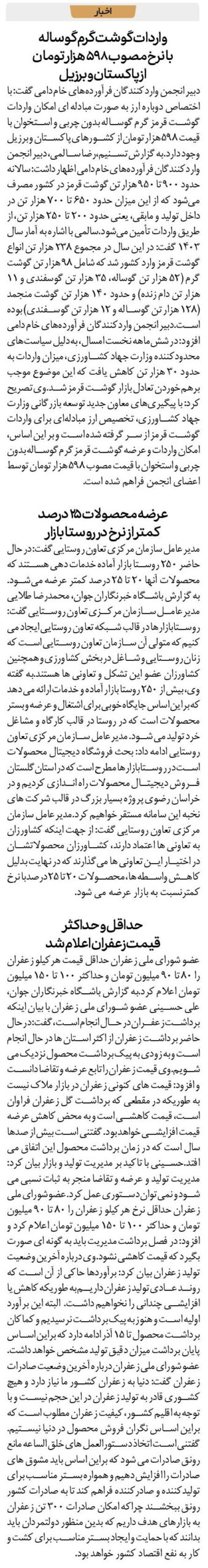 کمتر از نرخ در روستا بازار