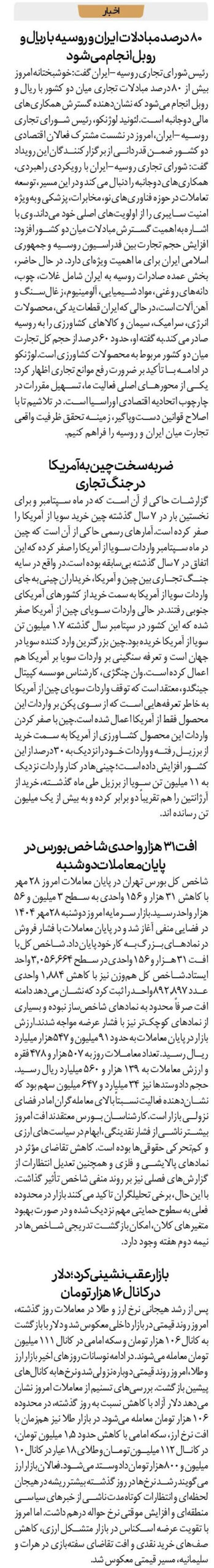 ۸۰ درصد مبادلات ایران و روسیه با ریال و روبل انجام میشود