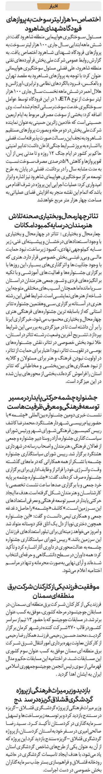 مسئول سوختگیری هواپیمایی منطقه شاهرود گفت: در شش ماهه ابتدایی سال جاری ۱۰۰ هزار لیتر سوخت به پروازهای فرودگاه شهدای شاهرود اختصاص یافت. به گزارش روابط عمومی شرکت ملی پخش فرآوردههای نفتی منطقه شاهرود، علی فضلی مسئول سوختگیری هواپیمائی عنوان کرد: با توجه به پروازهای شاهرود به مقصد تهران و بالعکس، فرود بالگردهای نظامی و ترابری، اورژانس و هلال احمر در شش ماهه نخست سال جاری ۱۰۰ هزار لیتر سوخت از نوع JETA 1 در این فرودگاه توسط عوامل سوختگیری خدمت سوخترسانی انجام شده است. وی اضافه کرد: بخشی از سوخت مصرفی مربوط به ایام اربعین حسینی است که خادمین زائرین حسینی بهعنوان نماینده شرکت ملی پخش در دو مرحله و بصورت پروازهای مستقیم شاهرود به نجف این رسالت صورت پذیرفته است. فضلی با اشاره به بروز شرایط جنگی اذعان داشت: تدابیر امنیتی حاکم بر کشور در ایام جنگ 12 روزه و تا مدتی پس از آن، لغو پروازها و کاهش 9/5 درصدی مصرف سوخت نسبت به مدت مشابه سال را در برداشت. فضلی در پایان به طرح توسعه مرکز سوختگیری هواپیمای شاهرود نیز اشاره و ابزار امیدواری کرد: عملیات اجرایی این پروژه در شرف اقدام می باشدکه اتمام این نقشه منجر به افزایش فضای عملیاتی به مساحت چهار هزار متر مربع خواهدشد