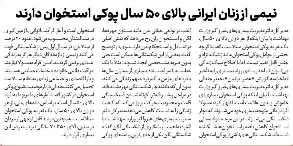 نیمی از زنان ایرانی بالای ۵۰ سال پوکی استخوان دارند