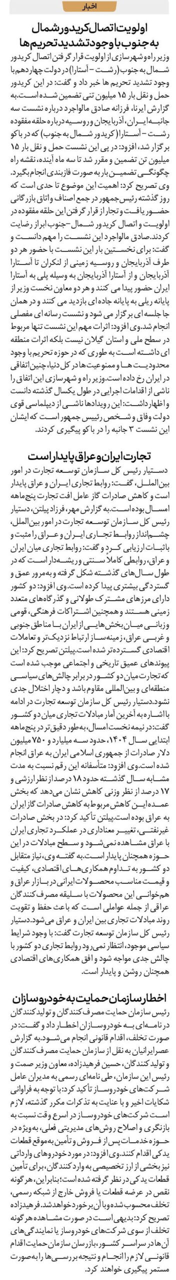 دستیار رئیس کل سازمان توسعه تجارت در امور بینالملل، گفت: روابط تجاری ایران و عراق پایدار است و کاهش صادرات گاز عامل افت تجارت پنجماهه امسال بوده است.به گزارش مهر، فرزاد پیلتن، دستیار رئیس کل سازمان توسعه تجارت در امور بینالملل، چشمانداز روابط تجاری ایران و عراق را مثبت و باثبات ارزیابی کرد و گفت: روابط تجاری میان ایران و عراق، روابطی کاملاً سنتی و ریشهدار است که در طول سالهای گذشته شکل گرفته و بهمرور عمق و گستردگی بیشتری پیدا کرده است.وی افزود: دو کشور دارای مرزهای مشترک طولانی و گذرگاههای متعدد زمینی هستند و همچنین اشتراکات فرهنگی، قومی و زبانی میان بخشهایی از ایران با مناطق جنوبی و غربی عراق، زمینهساز ارتباط نزدیکتر و تعاملات اقتصادی گستردهتر شده است.پیلتن تصریح کرد: این پیوندهای عمیق تاریخی و اجتماعی موجب شده است که تجارت میان دو کشور در برابر چالشهای سیاسی منطقهای و بینالمللی مقاوم باشد و دچار اختلال جدی نشود.دستیار رئیس کل سازمان توسعه تجارت در ادامه با اشاره به آخرین آمار مبادلات تجاری میان دو کشور گفت: در نیمه نخست امسال، بهطور دقیقتر در پنجماهه ابتدایی سال ۱۴۰۴، حدود سه میلیارد و ۷۵۰ میلیون دلار صادرات از جمهوری اسلامی ایران به عراق انجام شده است.وی افزود: متأسفانه این رقم نسبت به مدت مشابه سال گذشته حدود ۱۸ درصد از نظر ارزشی و ۱۷ درصد از نظر وزنی کاهش نشان میدهد که بخش عمده این کاهش مربوط به کاهش صادرات گاز ایران به عراق بوده است.پیلتن تأکید کرد: در بخش صادرات غیرنفتی، تغییر معناداری در عملکرد تجاری ایران با عراق مشاهده نمیشود و سطح مبادلات در این حوزه همچنان پایدار است.به گفته وی، نیاز متقابل دو کشور به تداوم همکاریهای اقتصادی، کیفیت و قیمت مناسب محصولات ایرانی در بازار عراق و همخوانی این محصولات با سلیقه مصرفکنندگان عراقی از جمله عواملی است که باعث حفظ و تقویت روند مبادلات تجاری بین ایران و عراق میشود.دستیار رئیس کل سازمان توسعه تجارت گفت: با وجود شرایط سیاسی موجود، انتظار نمیرود روابط تجاری دو کشور با چالش جدی مواجه شود و افق همکاریهای اقتصادی همچنان روشن و پایدار است.
