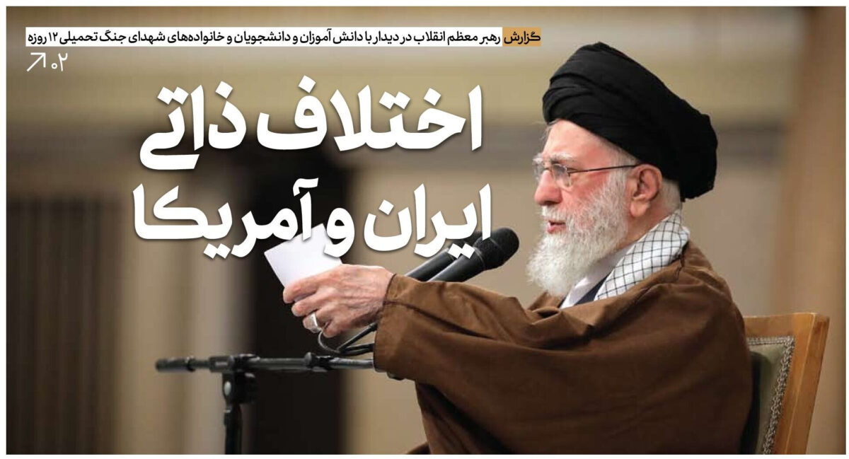 در آستانه روز سیزده آبان، «روز دانش آموز و روز ملی مبارزه با استکبار جهانی» حضرت آیت‌الله خامنه‌ای رهبر انقلاب اسلامی صبح امروز در دیدار هزاران تن از دانش‌آموزان و دانشجویان و جمعی از خانواده‌های شهدای جنگ تحمیلی ۱۲ روزه، سالروز تسخیر سفارت آمریکا به عنوان مرکز توطئه و نقشه‌پردازی بر ضد انقلاب اسلامی، در سیزدهم آبان سال ۱۳۵۸ را روز «افتخار و پیروزی» و روز «روشن شدن هویت حقیقی دولت استکباری آمریکا» خواندند و با تأکید بر ضرورت ثبت این روز در حافظه ملی، با تبیین سابقه دشمنی آمریکا با ملت ایران که از کودتای ۲۸ مرداد آغاز شد و همچنان ادامه دارد، تأکید کردند: اختلاف جمهوری اسلامی و آمریکا، اختلافی ذاتی و تقابل منافع دو جریان آمریکا و جمهوری اسلامی است و تنها در صورتی که آمریکا پشتیبانی خود را از رژیم ملعون صهیونیستی به‌طور کامل قطع و پایگاه های نظامی خود را از منطقه جمع‌آوری کند و در امور آن نیز دخالت نکند، درخواست آمریکایی ها برای همکاری با ایران نه در آینده نزدیک بلکه برای بعدها، قابل بررسی خواهد بود.