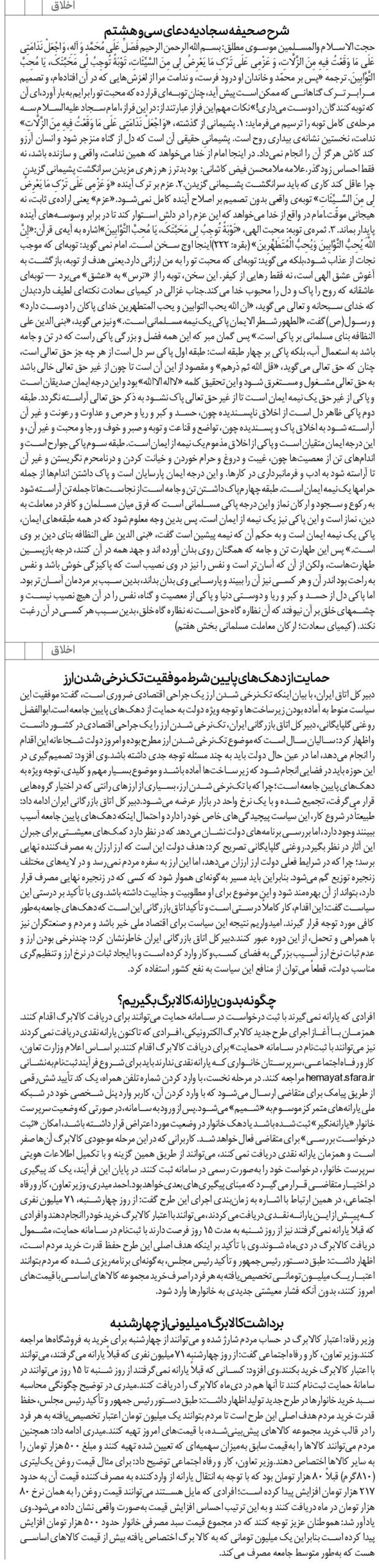حجت الاسلام والمسلمین موسوی مطلق: بسم الله الرحمن الرحیم فَصَلِّ عَلَی مُحَمَّدٍ وَ آلِهِ، وَ اجْعَلْ نَدَامَتِی عَلَی مَا وَقَعْتُ فِیهِ مِنَ الزَّلَّاتِ، وَ عَزْمِی عَلَی تَرْکِ مَا یَعْرِضُ لِی مِنَ السَّیِّئَاتِ، تَوْبَةً تُوجِبُ لِی مَحَبَّتَکَ، یَا مُحِبَّ التَّوَّابِینَ. ترجمه «پس بر محمّد و خاندان او درود فرست، و ندامت مرا از لغزش‌هایی که در آن افتاده‌ام، و تصمیم مرا بر ترک گناهانی که ممکن است پیش آید، چنان توبه‌ای قرار ده که محبت تو را برایم به بار آورد،ای آن که توبه‌کنندگان را دوست می‌داری!» نکات مهم این فراز عبارتند از: در این فراز، امام سجاد علیه‌السلام سه مرحله‌ی کامل توبه را ترسیم می‌فرماید: ۱. پشیمانی از گذشته، «وَ اجْعَلْ نَدَامَتِی عَلَی مَا وَقَعْتُ فِیهِ مِنَ الزَّلَّاتِ» ندامت، نخستین نشانه‌ی بیداری روح است. پشیمانیِ حقیقی آن است که دل از گناه منزجر شود و انسان آرزو کند کاش هرگز آن را انجام نمی‌داد. در اینجا امام از خدا می‌خواهد که همین ندامت، واقعی و سازنده باشد، نه فقط احساس زودگذر.علامه ملامحسن فیض کاشانی: بود بدتر ز هر زهری مزیدن سرانگشت پشیمانی گزیدن  چرا عاقل کند کاری که باید سرانگشت پشیمانی گزیدن.۲. عزم بر ترک آینده «وَ عَزْمِی عَلَی تَرْکِ مَا یَعْرِضُ لِی مِنَ السَّیِّئَاتِ» توبه‌ی واقعی بدون تصمیم بر اصلاح آینده کامل نمی‌شود.«عزم» یعنی اراده‌ی ثابت، نه هیجانی موقّت.امام در واقع از خدا می‌خواهد که این عزم را در دلش استوار کند تا در برابر وسوسه‌های آینده پایدار بماند. ۳. ثمره‌ی توبه: محبت الهی، «تَوْبَةً تُوجِبُ لِی مَحَبَّتَکَ، یَا مُحِبَّ التَّوَّابِینَ»اشاره به آیه‌ی قرآن:«إِنَّ اللَّهَ یُحِبُّ التَّوَّابِینَ وَیُحِبُّ الْمُتَطَهِّرِینَ» (بقره: ۲۲۲)اینجا اوج سخن است. امام نمی‌گوید: توبه‌ای که موجب نجات از عذاب شود،بلکه می‌گوید: توبه‌ای که محبت تو را به من ارزانی دارد.یعنی هدف از توبه، بازگشت به آغوش عشق الهی است، نه فقط رهایی از کیفر. این سخن، توبه را از «ترس» به «عشق» می‌برد — توبه‌ای عاشقانه که روح را پاک و دل را محبوب خدا می‌کند.جناب غزالی در کیمیای سعادت نکته‌ای لطیف دارد:بدان که خدای سبحانه و تعالی می‌گوید، «ان الله یحب التوابین و یحب المتطهرین خدای پاکان را دوست دارد» و رسول (ص) گفت، «الطهور شطر الایمان پاکی یک نیمه مسلمانی است.» و نیز می‌گوید، «بنی الدین علی النظافه بنای مسلمانی بر پاکی است.» پس گمان مبر که این همه فضل و بزرگی پاکی راست که در تن و جامه باشد به استعمال آب، بلکه پاکی بر چهار طبقه است: طبقه اول پاکی سر دل است از هر چه جز حق تعالی است، چنان که حق تعالی می‌گوید، «قل الله ثم ذرهم» و مقصود از این آن است تا چون از غیر حق تعالی خالی باشد به حق تعالی مشغول و مستغرق شود و این تحقیق کلمه «لااله الاالله» بود و این درجه ایمان صدیقان است و پاکی از غیر حق یک نیمه ایمان است تا از غیر حق تعالی پاک نشود به ذکر حق تعالی آراسته نگردد. طبقه دوم پاکی ظاهر دل است از اخلاق ناپسندیده چون، حسد و کبر و ریا و حرص و عداوت و رعونت و غیر آن آراسته شود به اخلاق پاک و پسندیده چون، تواضع و قناعت و توبه و صبر و خوف و رجا و محبت و غیر آن، و این درجه ایمان متقیان است و پاکی از اخلاق مذموم یک نیمه از ایمان است. طبقه سوم پاکی جوارح است و اندام‌های تن از معصیت‌ها چون، غیبت و دروغ و حرام خوردن و خیانت کردن و درنامحرم نگریستن و غیر آن تا آراسته شود به ادب و فرمانبرداری در کارها. و این درجه ایمان پارسایان است و پاک داشتن اندام‌ها از جمله حرامها یک نیمه ایمان است. طبقه چهارم پاک داشتن تن و جامه است از نجاست‌ها تا جمله تن آراسته شود به رکوع و سجود و ارکان نماز و این درجه پاکی مسلمانی است که فرق میان مسلمان و کافر در معاملت به دین، نماز است و این پاکی نیز یک نیمه از ایمان است. پس بدین وجه معلوم شود که در همه طبقه‌های ایمان، پاکی یک نیمه ایمان است و به حکم 