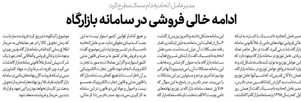 ادامه خالی فروشی در سامانه بازارگاه
