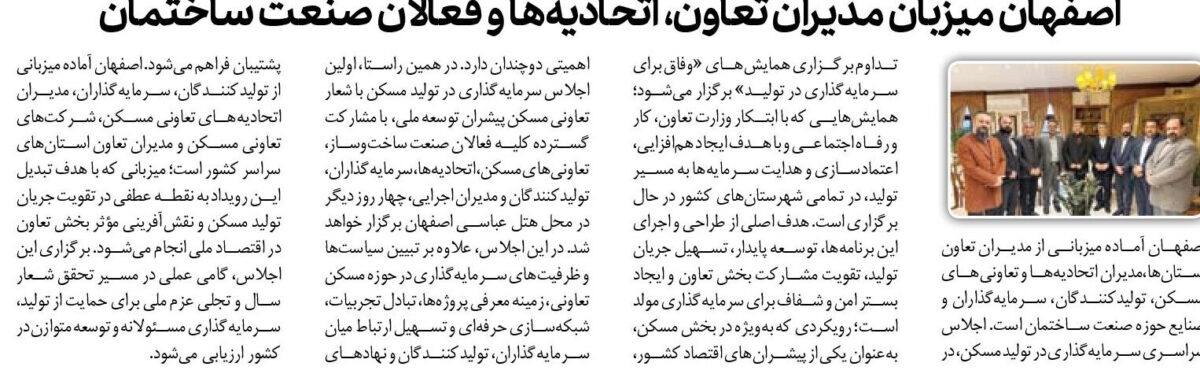 اصفهان آماده میزبانی از مدیران تعاون استانها،مدیران اتحادیهها و تعاونیهای مسکن، تولیدکنندگان، سرمایهگذاران و صنایع حوزه صنعت ساختمان است. اجلاس سراسری سرمایهگذاری در تولید مسکن، در تداوم برگزاری همایشهای «وفاق برای سرمایهگذاری در تولید» برگزار میشود؛ همایشهایی که با ابتکار وزارت تعاون، کار و رفاه اجتماعی و با هدف ایجاد همافزایی، اعتمادسازی و هدایت سرمایهها به مسیر تولید، در تمامی شهرستانهای کشور در حال برگزاری است. هدف اصلی از طراحی و اجرای این برنامهها، توسعه پایدار، تسهیل جریان تولید، تقویت مشارکت بخش تعاون و ایجاد بستر امن و شفاف برای سرمایهگذاری مولد است؛ رویکردی که بهویژه در بخش مسکن، بهعنوان یکی از پیشرانهای اقتصاد کشور، اهمیتی دوچندان دارد. در همین راستا، اولین اجلاس سرمایهگذاری در تولید مسکن با شعار تعاونی مسکن پیشران توسعه ملی، با مشارکت گسترده کلیه فعالان صنعت ساختوساز، تعاونیهای مسکن، اتحادیهها، سرمایهگذاران، تولیدکنندگان و مدیران اجرایی، چهار روز دیگر در محل هتل عباسی اصفهان برگزار خواهد شد. در این اجلاس، علاوه بر تبیین سیاستها و ظرفیتهای سرمایهگذاری در حوزه مسکن تعاونی، زمینه معرفی پروژهها، تبادل تجربیات، شبکهسازی حرفهای و تسهیل ارتباط میان سرمایهگذاران، تولیدکنندگان و نهادهای پشتیبان فراهم میشود. اصفهان آماده میزبانی از تولیدکنندگان، سرمایهگذاران، مدیران اتحادیههای تعاونی مسکن، شرکتهای تعاونی مسکن و مدیران تعاون استانهای سراسر کشور است؛ میزبانی که با هدف تبدیل این رویداد به نقطه عطفی در تقویت جریان تولید مسکن و نقشآفرینی مؤثر بخش تعاون در اقتصاد ملی انجام میشود. برگزاری این اجلاس، گامی عملی در مسیر تحقق شعار سال و تجلی عزم ملی برای حمایت از تولید، سرمایهگذاری مسئولانه و توسعه متوازن در کشور ارزیابی میشود.