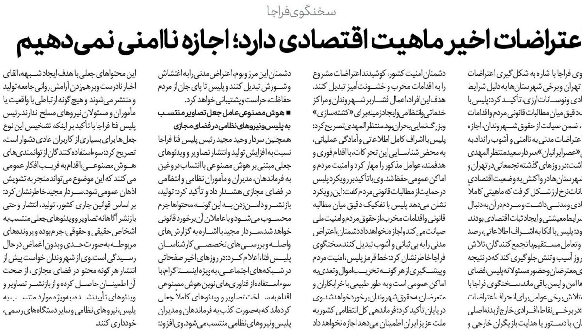 هوش مصنوعی عامل جعل تصاویر منتسب به پلیس و نیروهای نظامی در فضای مجازی
