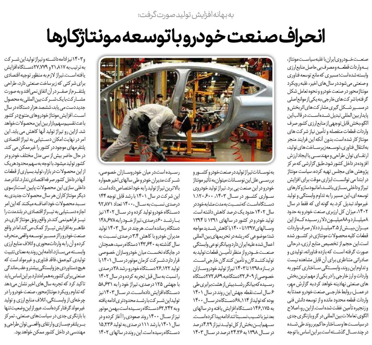 صنعت خودروی ایران با غلبه سیاست مونتاژ، به واردات قطعه و مصرف بی‌حاصل منابع ارزی وابسته شده است؛ مسیری که مانع توسعه فناوری و صنعتی می‌شود.در سال‌های اخیر، غلبه رویکرد مونتاژمحور در صنعت خودرو و نحوه تعامل شکل گرفته با شرکت های خارجی، به یکی از موانع اصلی در مسیر شکل گیری مشارکت های اثربخش و پایدار بین المللی تبدیل شده است. در قالب این الگو، بخش قابل توجهی از منابع ارزی کشور صرف واردات قطعات منفصله و تأمین نیاز شرکت های مونتاژکار شده است، بدون آنکه این فرایند منجر به انتقال فناوری، توسعه زیرساخت های تولید، ارتقای توان طراحی و مهندسی یا ایجاد ارزش افزوده در داخل کشور شود.طبق گزارشی که مرکز پژوهش های مجلس تهیه کرده، سیاست مونتاژ در ابتدا می توانست ابزاری موقت برای افزایش تیراژ و داخلی سازی باشد، اما نبود سازوکارهای توسعه ای، این مسیر را به تداوم وابستگی و تولید غیرمولد تبدیل کرد. به گونه ای که فقط در سال ۱۴۰۲، میزان کل ارزبری صنعت خودرو به حدود ۸ میلیارد و ۸۸ میلیون دلار رسیده که از این میزان، بیش از ۳.۵ میلیارد دلار صرف واردات قطعات کلیه محصولات مونتاژی در کشور شده است.این حجم از تخصیص منابع ارزی، درحالی صورت گرفته است که بازده فناورانه، تولیدی و صادراتی متناظری برای آن قابل مشاهده نیست و تداوم این روند، وابستگی ساختاری کشور به واردات و ارز خارجی را در یکی از مهم ترین بخش های صنعتی نهادینه خواهد کرد.به گزارش مهر، درعمل، روابط خارجی صنعت خودرو عمدتاً به واردات قطعه محدود مانده و از توسعه دانش فنی و زنجیره تأمین غفلت شده است. ازاین رو، اصلاح الگوی تعاملات بین المللی در گرو بازنگری جدی در سیاست ها و ساختار حاکم بر روند طی شده در چند سال گذشته است.بر این اساس با توجه به نوسانات تیراژ تولید در صنعت خودرو کشور و بررسی علل این نوسانات میتوان به تأثیر مونتاژ خودرو در این صنعت پی برد. تیراژ تولید خودروی سواری کشور در سال ۱۴۰۳، ۱.۱۲۰.۶۰۰ دستگاه است که نسبت به مدت مشابه خود در سال ۱۴۰۲ حدود یک درصد کاهش داشته است.تولید خودرو در کشور در سالهای ۱۳۹۱ تا ۱۳۹۴ و سالهای ۱۳۹۷ تا ۱۴۰۰ با کاهش شدید مواجه شد؛ موضوعی که ریشه در تحریمهای بین المللی اعمال شده علیه ایران دارد و بیانگر نوعی وابستگی صنعت خودرو از منظر تأمین قطعات تولید به تولیدکنندگان و تأمین کنندگان خارجی است.در بازه ۱۳۹۸ تا ۱۴۰۳ تیراژ تولید خودروسازان خصوصی از ۳۲,۶۰۹ دستگاه به ۲۷۲,۸۶۹ دستگاه رسیده که بیانگر رشد بیش از هشت برابری طی ۶ سال است.نقطه جهش این روند در سال ۱۴۰۱ بوده که تولید از ۶۸,۱۱۴ دستگاه در سال ۱۴۰۰ به ۱۴۶,۱۷۵ دستگاه افزایش یافته و در سالهای بعد نیز با شیب نسبتاً تند ادامه پیدا کرده است. سهم این بخش از کل تولید نیز از ۴.۲۹ درصد در سال ۱۳۹۸ به ۲۴.۳۶ درصد در سال ۱۴۰۳ رسیده است.در میان خودروسازان خصوصی، شرکت مدیران خودرو طی سالهای اخیر همواره بالاترین تیراژ تولید را به خود اختصاص داده است. این شرکت در سال ۱۴۰۱ با رشد قابل توجه ۱۴۴ درصدی نسبت به سال ،۱۴۰۰ تعداد ۹۲,۸۷۱ دستگاه خودرو تولید کرده و در سال ۱۴۰۲ نیز با رشد ۶۰ درصدی، تیراژ خود را به ۱۴۸,۶۷۸ دستگاه رسانده است. هرچند در سال ۱۴۰۳ تولید مدیران خودرو با کاهش ۳.۴ درصدی نسبت به سال گذشته به ۱۴۳,۶۴۰ دستگاه رسید، همچنان در جایگاه نخست میان خودروسازان خصوصی قرار دارد.شرکت کرمان موتور در سال ۱۴۰۱ با تولید ۲۶,۱۲۲ دستگاه خودرو، رشد ۳۸ درصدی را نسبت به سال قبل تجربه کرده و در سال ۱۴۰۲ با جهشی ۱۲۵ درصدی، تیراژ خود را به ۵۸,۶۳۱ دستگاه افزایش داده است. در سال ۱۴۰۳ نیز تولید این شرکت با رشد محدودتری ادامه یافته و به ۶۲,۲۴۲ دستگاه رسیده است.بهمن موتور نیز از سال ۱۴۰۰ روند صعودی را آغاز کرده و در سال ۱۴۰۱ با رشد ۱۱۱ درصدی به تولید ۱۵,۲۳۶ دستگاه رسیده است. این روند در سالهای ۱۴۰۲ و ۱۴۰۳ نیز ادامه داشته و تیراژ تولید این شرکت به ترتیب به ۲۱,۸۱۷ و ۲۷,۷۷۹ دستگاه افزایش یافته است.تیراژ لازم به منظور ت