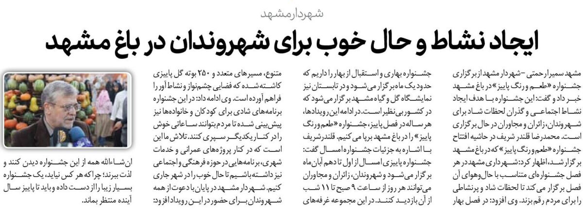 مشهد سمیرا رحمتی – شهردار مشهد از برگزاری جشنواره «طعم و رنگ پاییز» در باغ مشهد خبر داد و گفت: این جشنواره با هدف ایجاد نشاط اجتماعی و گذران لحظات شاد برای شهروندان، زائران و مجاوران در حال برگزاری است. محمدرضا قلندر شریف در حاشیه افتتاح جشنواره «طعم و رنگ پاییز» که در باغ مشهد برگزار شد، اظهار کرد: شهرداری مشهد در هر فصل جشنوارهای متناسب با حالوهوای آن فصل برگزار میکند تا لحظات شاد و پرنشاطی را برای مردم رقم بزند. وی افزود: در فصل بهار جشنواره بهاری و استقبال از بهار را داریم که حدود یک ماه برگزار میشود و در تابستان نیز نمایشگاه گل و گیاه مشهد برگزار میشود که در کشور بینظیر است. در ادامه این رویدادها، هر ساله در فصل پاییز، جشنواره «طعم و رنگ پاییز» را در باغ مشهد برپا میکنیم. قلندرشریف با اشاره به جزئیات جشنواره امسال گفت: جشنواره پاییزی امسال از اول تا دهم آبانماه برگزار میشود و شهروندان، زائران و مجاوران میتوانند هر روز از ساعت ۹ صبح تا ۱۱ شب از آن بازدید کنند. در این مجموعه غرفههای متنوع، مسیرهای متعدد و ۲۵۰ بوته گل پاییزی کاشته شده که فضایی چشمنواز و نشاطآور را فراهم آورده است. وی ادامه داد: در این جشنواره برنامههای شادی برای کودکان و خانوادهها نیز پیشبینی شده تا مردم بتوانند ساعاتی خوش را در کنار یکدیگر سپری کنند. تلاش ما این است که در کنار پروژههای عمرانی و خدمات شهری، برنامههایی در حوزه فرهنگی و اجتماعی نیز داشته باشیم تا حال خوب را در شهر جاری کنیم. شهردار مشهد در پایان با دعوت از همه شهروندان برای حضور در این رویداد افزود: انشاءالله همه از این جشنواره دیدن کنند و لذت ببرند؛ چراکه هر کس نیاید، یک جشنواره بسیار زیبا را از دست داده و باید تا پاییز سال آینده منتظر بماند.