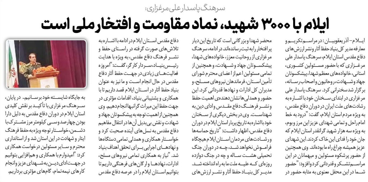 ایلام- آذر یعقوبیان : در مراسم تکریم و معارفه مدیر کل بنیاد حفظ آثار و نشر ارزشهای دفاع مقدس استان ایلام، سرهنگ پاسدار علی مرغزاری که با حضور مسئولین کشوری، استانی، خانوادههای معظم شهدا، پیشکسوتان جهاد و شهادت، روحانیون و اصحاب رسانه، برگزار شد سخنرانی کرد. سرهنگ پاسدار علی مرغزاری در ابتدای سخنان خود با اشاره به رشادتهای ملت ایران در دوران دفاع مقدس، به ویژه مردم استان ایلام، گفت: “درود به خط امام راحل و تمامی شهدای عزیز این مرز و بوم، به ویژه سه هزار شهید گرانقدر استان ایلام که جان خود را فدای این خاک کردند. این شهدای عزیز همیشه چراغ راه ما بودهاند. وی همچنین از حضور پرشکوه مسئولین و میهمانان در این مراسم تشکر و قدردانی کرد و افزود: “حضور شما در این محفل معنوی به مثابه حضور در محضر شهدا و بزرگانی است که تاریخ این دیار پر افتخار را به ثبت رساندهاند. در ادامه، سرهنگ مرغزاری از روحانیت معزز، خانوادههای شهدا، پیشکسوتان جهاد و شهادت، و همچنین از تمامی مسئولین اعم از اعضای محترم شورای تأمین استان، فرماندهان نیروهای مسلح، و مدیران کل ادارات و نهادها قدردانی کرد. این حضور و همدلیها نشاندهندهی اهمیت حفظ و نشر فرهنگ دفاع مقدس و ادای دین به شهداست. وی در بخش دیگری از سخنان خود با اشاره به تاریخ پربار استان ایلام در دوران دفاع مقدس، اظهار داشت: “تاریخ حماسهها و رشادتهای مردمان استان ایلام هیچگاه فراموش نخواهد شد، چه در دوران جنگ تحمیلی هشت ساله و چه در جنگ دوازده روزهای که علیه ملت ما به راه انداخته شد. مدیر کل بنیاد حفظ آثار و نشر ارزشهای دفاع مقدس استان ایلام در ادامه با اشاره به تلاشهای صورت گرفته در راستای حفظ و نشر فرهنگ دفاع مقدس، به ویژه با هدایت رئیس بنیاد، سردار کارگر، گفت: “امروزه فعالیتهای زیادی در جهت حفظ آثار دفاع مقدس در حال انجام است و ما نیز به عنوان بنیاد حفظ آثار در استان ایلام قصد داریم تا با همکاری و پشتیبانی بنیاد، اقدامات مؤثری در جهت حفظ این میراث گرانبها انجام دهیم. وی همچنین از اهمیت توجه به پیشکسوتان جهاد و شهادت و نقش بیبدیل آنها در انتقال مفاهیم دفاع مقدس به نسلهای آینده صحبت کرد و خواستار همکاری و همدلی تمامی دستگاهها و نهادهای اجرایی برای تحقق اهداف بنیاد شد. “نیاز به همکاری تمامی نیروهای مسلح، ادارات، نهادها و ارگانهای فرهنگی داریم تا بتوانیم استان ایلام را در عرصه دفاع مقدس به جایگاه شایسته خود برسانیم.. در پایان، سرهنگ مرغزاری با تأکید بر نقش کلیدی استان ایلام در دوران دفاع مقدس به دلیل دارا بودن چهارصد و سی کیلومتر مرز مشترک با دشمن، خواستار توجه ویژه به حفظ فرهنگ ایثار و شهادت در این استان شد و از استانداری محترم و سایر مسئولین درخواست همکاری کرد: “امیدوارم با همکاری و همافزایی بتوانیم در جهت ادای دین به شهدای عزیز و انجام کارهای نیمهتمام، گامهای مؤثری برداریم.