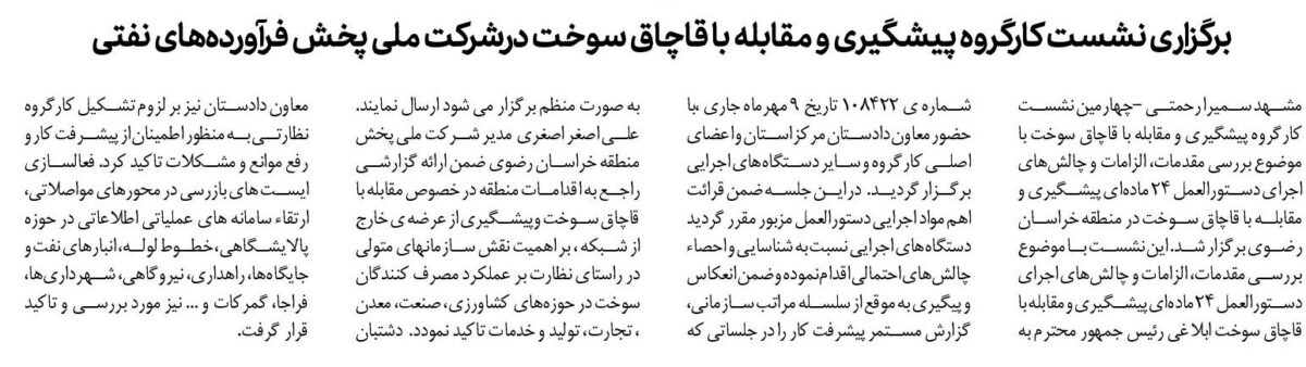 برگزاری نشست کارگروه پیشگیری و مقابله با قاچاق سوخت درشرکت ملی پخش فرآورده‌های نفتی