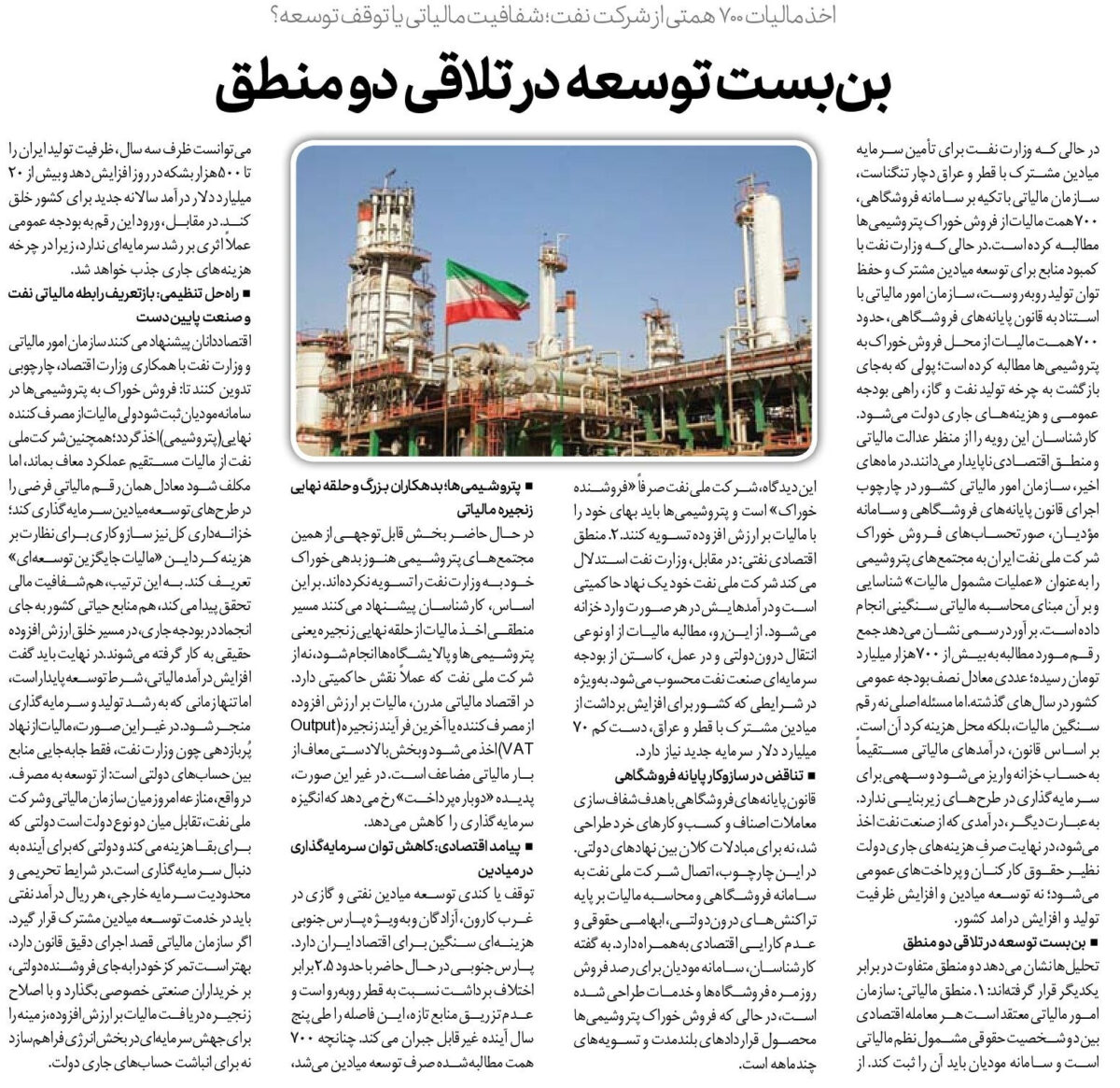 اقتصاددانان پیشنهاد میکنند سازمان امور مالیاتی و وزارت نفت با همکاری وزارت اقتصاد، چارچوبی تدوین کنند تا: فروش خوراک به پتروشیمیها در سامانه مودیان ثبت شود ولی مالیات از مصرفکننده نهایی (پتروشیمی) اخذ گردد؛ همچنین شرکت ملی نفت از مالیات مستقیم عملکرد معاف بماند، اما مکلف شود معادل همان رقم مالیاتیِ فرضی را در طرحهای توسعه میادین سرمایهگذاری کند؛ خزانهداری کل نیز سازوکاری برای نظارت بر هزینهکرد این «مالیات جایگزین توسعهای» تعریف کند. به این ترتیب، هم شفافیت مالی تحقق پیدا میکند، هم منابع حیاتی کشور به جای انجماد در بودجه جاری، در مسیر خلق ارزش افزوده حقیقی به کار گرفته میشوند.در نهایت باید گفت افزایش درآمد مالیاتی، شرط توسعه پایدار است، اما تنها زمانی که به رشد تولید و سرمایهگذاری منجر شود. در غیر این صورت، مالیات از نهاد پُربازدهی چون وزارت نفت، فقط جابهجایی منابع بین حسابهای دولتی است: از توسعه به مصرف.در واقع، منازعه امروز میان سازمان مالیاتی و شرکت ملی نفت، تقابل میان دو نوع دولت است دولتی که برای بقا هزینه میکند و دولتی که برای آینده به دنبال سرمایهگذاری است.در شرایط تحریمی و محدودیت سرمایه خارجی، هر ریال درآمد نفتی باید در خدمت توسعه میادین مشترک قرار گیرد.اگر سازمان مالیاتی قصد اجرای دقیق قانون دارد، بهتر است تمرکز خود را بهجای فروشنده دولتی، بر خریداران صنعتی خصوصی بگذارد و با اصلاح زنجیره دریافت مالیات بر ارزش افزوده، زمینه را برای جهش سرمایهای در بخش انرژی فراهم سازد نه برای انباشت حسابهای جاری دولت.