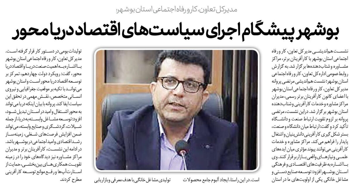 نشست هماندیشی مدیرکل تعاون، کار و رفاه اجتماعی استان بوشهر با کارآفرینان برتر، مراکز مشاوره و شتابدهندهها برگزار شد. به گزارش روابطعمومی ادارهکل تعاون، کار و رفاه اجتماعی استان بوشهر؛ نشست هماندیشی مرتضی پروانه مدیرکل تعاون، کار و رفاه اجتماعی استان بوشهر با اعضای کانون کارآفرینان برتر رسمی، مدیران مراکز مشاوره و خدمات کارآفرینی و شتابدهنده استان بوشهر برگزار شد. دراین نشست، مرتضی پروانه بر لزوم تقویت ارتباط صنعت و دانشگاه تأکید کرد و گفت: ارتباط میان دانشگاه و صنعت، بستر شکلگیری کارآفرینی دانشبنیان و اشتغال پایدار را فراهم میکند. مراکز مشاوره و خدمات کارآفرینی میتوانند پیوند مؤثری میان ایدههای علمی و نیازهای واقعی بازار برقرار کنند. وی با اشاره به ظرفیتهای اقتصادی و فرهنگی استان بوشهر افزود: توسعه صنایع دستی و مشاغل خانگی یکی از اولویتهای ما در استان است. در این راستا، ایجاد آلبوم جامع محصولات تولیدی مشاغل خانگی با هدف معرفی و بازاریابی تولیدات بومی در دستور کار قرار گرفته است. مدیرکل تعاون، کار و رفاه اجتماعی استان بوشهر با اشاره به اهمیت صنعت دریا و اقتصاد دریا محور، گفت: رویکرد دولت چهاردهم، تمرکز بر توسعه اقتصاد دریا محور است و استان بوشهر میتواند با تکیه بر موقعیت جغرافیایی و نیروی انسانی متخصص، نقش مهمی در تحقق این سیاست ایفا کند. پروانه با بیان اینکه دریا میتواند به محور اشتغال و امید در استان تبدیل شود، افزود: توسعه مشاغل وابسته به دریا، از جمله شیلات، گردشگری و صنایع وابسته، میتواند ضمن افزایش فرصتهای شغلی، زمینهساز رشد اقتصادی و امید اجتماعی در بوشهر باشد. در ادامه این نشست، کارآفرینان برتر و مدیران مراکز مشاوره نیز دیدگاههای خود را در زمینه تقویت همکاریهای بینبخشی، حمایت از استارتآپها و رفع موانع توسعه کارآفرینی مطرح کردند.