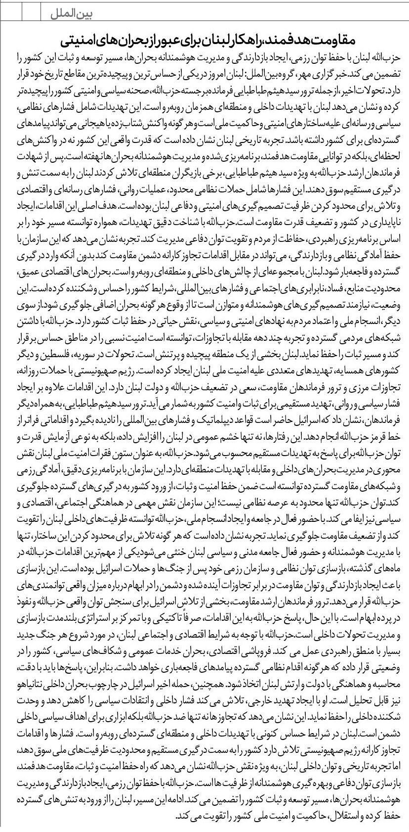 مقاومت هدفمند، راهکار لبنان برای عبور از بحرانهای امنیتی