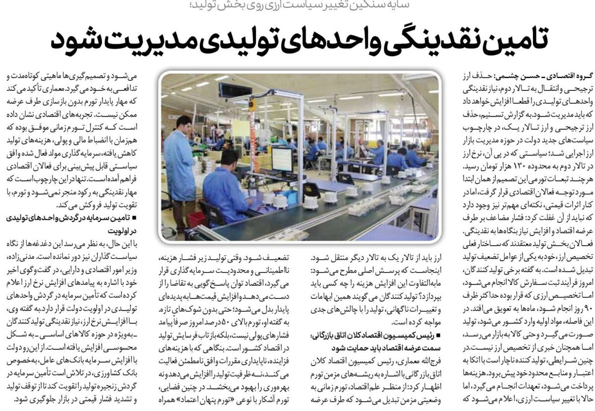 با این حال، به نظر میرسد این دغدغهها از نگاه سیاستگذاران نیز دور نمانده است. مدنیزاده، وزیر امور اقتصادی و دارایی، در گفتوگوی اخیر خود با اشاره به پیامدهای افزایش نرخ ارز اعلام کرده است که تأمین سرمایه در گردش واحدهای تولیدی در اولویت دولت قرار دارد.به گفته وی، با افزایش نرخ ارز، نیاز نقدینگی تولیدکنندگان ـ بهویژه در حوزه کالاهای اساسی ـ به شکل محسوسی افزایش یافته است. از اینرو دولت با افزایش سرمایه بانکهای عامل، بهخصوص بانک کشاورزی، در تلاش است تأمین سرمایه در گردش زنجیره تولید را تقویت کند تا از توقف تولید و تشدید فشار قیمتی در بازار جلوگیری شود.