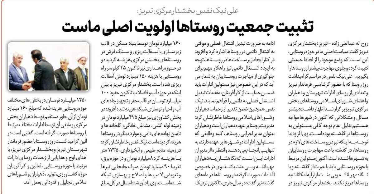 روح اله عبدالعلی زاده – تبریز ؛ بخشدار مرکزی تبریز گفت: سیاست اصلی ما در حوزه روستایی، این است که وضع موجود را از لحاظ جمعیتی تثبیت کرده و جلوی مهاجرت بیشتر از روستاها را بگیریم. علی نیک نفس در مراسم گرامیداشت روز روستا که با حضور گرشاسبی فرماندار تبریز و تعدادی از روسای ادارات شهرستان و دهیاران و اعضای شورای اسلامی روستاهای بخش مرکزی تبریز برگزار شد اظهار داشت: بیشتر مسائل و مشکلاتی که اکنون در شهرها مواجه هستیم بدلیل عدم توجه کافی مسئولین به روستاها در گذشته بوده است. وی افزود: با توجه به اینکه نبود زیرساخت های لازم در روستاها، در گذشته باعث مهاجرت روستاییان به شهرها شده است، اکنون مسئولین مرتبط با حوزه روستایی باید با عبرت از گذشته و با نگاه مهربانانه و بی منت، از ارایه امکانات به روستاها دریغ نکنند. بخشدار مرکزی تبریز در ادامه به ضرورت تبدیل اشتغال فصلی و موقتی به اشتغال دائمی در روستاها اشاره کرد و افزود: در کنار ایجاد زیرساخت ها در روستاها، توجه به ایجاد اشتغال دائمی نیز راهکار مهم برای جلوگیری از مهاجرت روستاییان به شمار می آید که در این خصوص نیز مسئولین ادارات باید ضمن حمایت از کارآفرینان، مقدمات تبدیل اشتغال فصلی به دائمی را فراهم نمایند. نیک نفس همچنین ضمن تقدیر از زحمات دهیاران و شوراهای اسلامی روستاها خاطرنشان کرد: مدیریت روستا بر عهده دهیاران است و دهیاران بعنوان مدیر اجرایی روستاها، کلیه وظایفی که مسئولین ادارات در شهرها بر عهده دارند، به تنهایی انجام می دهند و انتظار ما از مدیران ادارات این است که نگاهشان به دهیاران مهربانانه و بی منت باشد. وی در خصوص اقدامات صورت گرفته در روستاها در ماههای گذشته نیز گفت: در سالجاری، تاکنون نزدیک ۱۶۰ میلیارد تومان توسط بنیاد مسکن در قالب زیرسازی، آسفالت ریزی و سنگ فرش در روستاهای بخش مرکزی هزینه گردیده و در حوزه راهداری نیز تاکنون ۴۵ کیلومتر راه روستایی با هزینه ۱۵۰ میلیارد تومان آسفالت ریزی شده است. بخشدار مرکزی تبریز با بیان اینکه در حوزه آب و فاضلاب تاکنون حدود ۱۰۰ میلیارد تومان در قالب حفر و تجهیز چاه های آب و احیا و نوسازی شبکه هزینه شده افزود: در بخش کشاورزی نیز مبلغ ۴۲۵ میلیارد تومان در زمینه لوله کشی، مشاغل خانگی، گلخانه ها و تامین نهاده های دامی و موارد دیگر در روستاها هزینه گردیده است. نیک نفس خاطرنشان کرد: در زمینه منابع طبیعی و آبخیزداری، ۱۷۳۵ متر با هزینه کرد ۸ میلیارد تومان و در حوزه برق، تقریبا ۹۰ میلیارد تومان صرف جابجایی تیرها و تعویض لامپ ها و اصلاح و بهسازی شبکه شده است. وی یادآور شد: امسال در کل مبلغ ۱۲۵۰ میلیارد تومان در بخش های مختلف حوزه روستایی هزینه شده که مبلغ ۱۶۰ میلیارد تومان از آن بطور مستقیم توسط دهیاران بخش مرکزی و مابقی آن توسط ادارات مختلف مرتبط با روستاها صورت گرفته است. گفتنی است در آئین گرامیداشت روز روستا با حضور فرماندار شهرستان تبریز و بخشدار مرکزی تبریز، با اهدای لوح و هدایایی از زحمات روسای ادارات مرتبط با حوزه روستایی، فعالین و کارآفرینان حوزه کشاورزی، تولید ، دهیاران و شوراهای اسلامی تجلیل و قدردانی بعمل آمد.