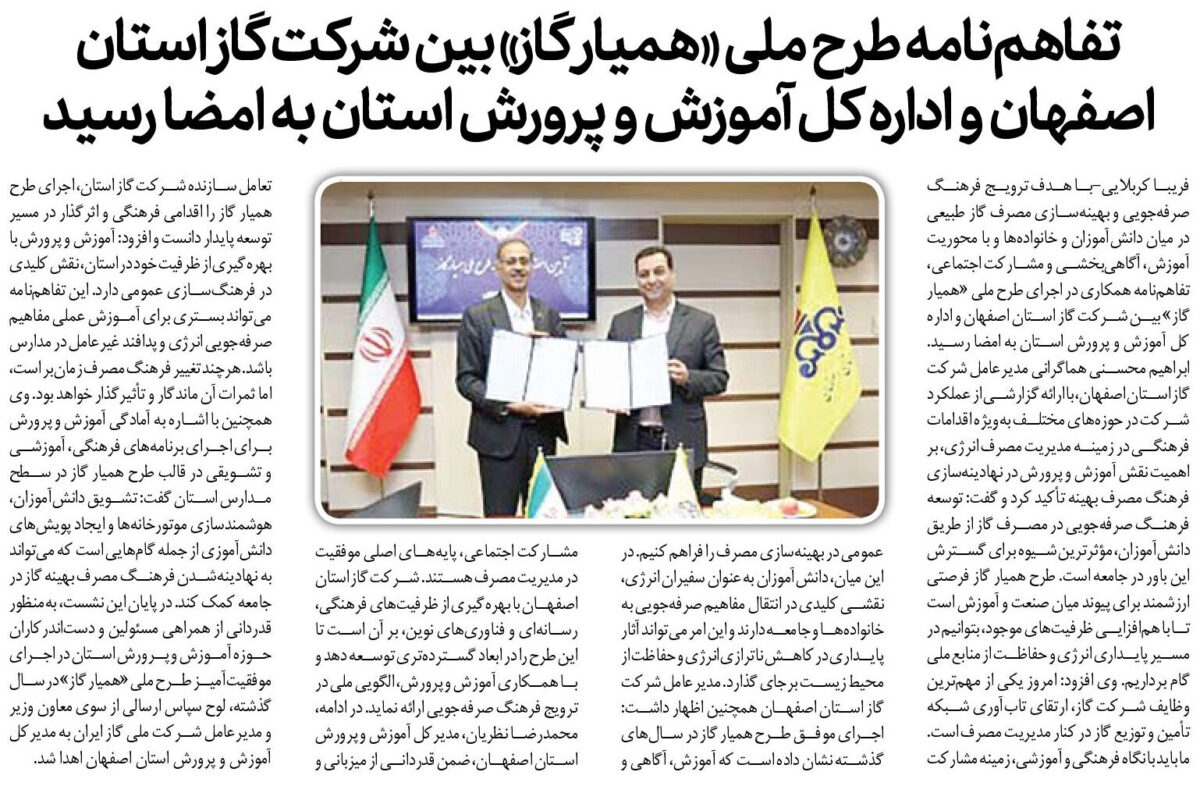 فریبا کربلایی-با هدف ترویج فرهنگ صرفهجویی و بهینهسازی مصرف گاز طبیعی در میان دانشآموزان و خانوادهها و با محوریت آموزش، آگاهیبخشی و مشارکت اجتماعی، تفاهمنامه همکاری در اجرای طرح ملی «همیار گاز» بین شرکت گاز استان اصفهان و اداره کل آموزش و پرورش استان به امضا رسید. ابراهیم محسنی هماگرانی مدیرعامل شرکت گاز استان اصفهان، با ارائه گزارشی از عملکرد شرکت در حوزههای مختلف بهویژه اقدامات فرهنگی در زمینه مدیریت مصرف انرژی، بر اهمیت نقش آموزش و پرورش در نهادینهسازی فرهنگ مصرف بهینه تأکید کرد و گفت: توسعه فرهنگ صرفهجویی در مصرف گاز از طریق دانشآموزان، مؤثرترین شیوه برای گسترش این باور در جامعه است. طرح همیار گاز فرصتی ارزشمند برای پیوند میان صنعت و آموزش است تا با همافزایی ظرفیتهای موجود، بتوانیم در مسیر پایداری انرژی و حفاظت از منابع ملی گام برداریم. وی افزود: امروز یکی از مهمترین وظایف شرکت گاز، ارتقای تابآوری شبکه تأمین و توزیع گاز در کنار مدیریت مصرف است. ما باید با نگاه فرهنگی و آموزشی، زمینه مشارکت عمومی در بهینهسازی مصرف را فراهم کنیم. در این میان، دانشآموزان بهعنوان سفیران انرژی، نقشی کلیدی در انتقال مفاهیم صرفهجویی به خانوادهها و جامعه دارند و این امر میتواند آثار پایداری در کاهش ناترازی انرژی و حفاظت از محیط زیست برجای گذارد. مدیرعامل شرکت گاز استان اصفهان همچنین اظهار داشت: اجرای موفق طرح همیار گاز در سالهای گذشته نشان داده است که آموزش، آگاهی و مشارکت اجتماعی، پایههای اصلی موفقیت در مدیریت مصرف هستند. شرکت گاز استان اصفهان با بهرهگیری از ظرفیتهای فرهنگی، رسانهای و فناوریهای نوین، بر آن است تا این طرح را در ابعاد گستردهتری توسعه دهد و با همکاری آموزش و پرورش، الگویی ملی در ترویج فرهنگ صرفهجویی ارائه نماید. در ادامه، محمدرضا نظریان، مدیرکل آموزش و پرورش استان اصفهان، ضمن قدردانی از میزبانی و تعامل سازنده شرکت گاز استان، اجرای طرح همیار گاز را اقدامی فرهنگی و اثرگذار در مسیر توسعه پایدار دانست و افزود: آموزش و پرورش با بهرهگیری از ظرفیت خود در استان، نقش کلیدی در فرهنگسازی عمومی دارد. این تفاهمنامه میتواند بستری برای آموزش عملی مفاهیم صرفهجویی انرژی و پدافند غیرعامل در مدارس باشد. هرچند تغییر فرهنگ مصرف زمانبر است، اما ثمرات آن ماندگار و تأثیرگذار خواهد بود. وی همچنین با اشاره به آمادگی آموزش و پرورش برای اجرای برنامههای فرهنگی، آموزشی و تشویقی در قالب طرح همیار گاز در سطح مدارس استان گفت: تشویق دانشآموزان، هوشمندسازی موتورخانهها و ایجاد پویشهای دانشآموزی از جمله گامهایی است که میتواند به نهادینهشدن فرهنگ مصرف بهینه گاز در جامعه کمک کند. در پایان این نشست، بهمنظور قدردانی از همراهی مسئولین و دستاندرکاران حوزه آموزش و پرورش استان در اجرای موفقیتآمیز طرح ملی «همیار گاز» در سال گذشته، لوح سپاس ارسالی از سوی معاون وزیر و مدیرعامل شرکت ملی گاز ایران به مدیرکل آموزش و پرورش استان اصفهان اهدا شد.