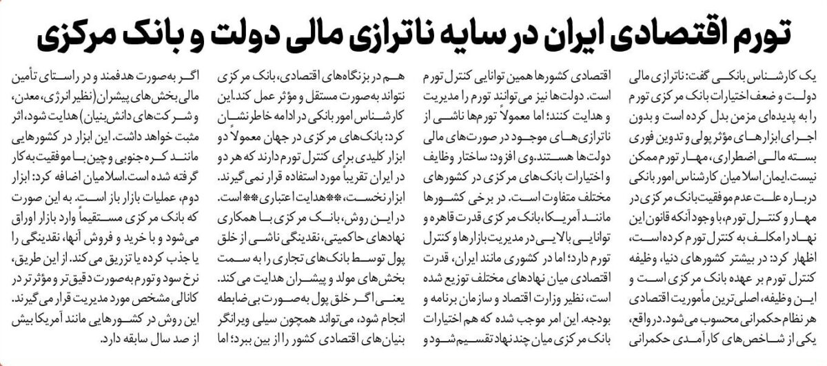 یک کارشناس بانکی گفت: ناترازی مالی دولت و ضعف اختیارات بانک مرکزی تورم را به پدیدهای مزمن بدل کرده است و بدون اجرای ابزارهای مؤثر پولی و تدوین فوری بسته مالی اضطراری، مهار تورم ممکن نیست.ایمان اسلامیان کارشناس امور بانکی درباره علت عدم موفقیت بانک مرکزی در مهار و کنترل تورم، با وجود آنکه قانون این نهاد را مکلف به کنترل تورم کرده است، اظهار کرد: در بیشتر کشورهای دنیا، وظیفه کنترل تورم بر عهده بانک مرکزی است و این وظیفه، اصلیترین مأموریت اقتصادی هر نظام حکمرانی محسوب میشود. درواقع، یکی از شاخصهای کارآمدی حکمرانی اقتصادی کشورها همین توانایی کنترل تورم است. دولتها نیز میتوانند تورم را مدیریت و هدایت کنند؛ اما معمولاً تورمها ناشی از ناترازیهای موجود در صورتهای مالی دولتها هستند.وی افزود: ساختار وظایف و اختیارات بانکهای مرکزی در کشورهای مختلف متفاوت است. در برخی کشورها مانند آمریکا، بانک مرکزی قدرت قاهره و توانایی بالایی در مدیریت بازارها و کنترل تورم دارد؛ اما در کشوری مانند ایران، قدرت اقتصادی میان نهادهای مختلف توزیع شده است، نظیر وزارت اقتصاد و سازمان برنامه و بودجه. این امر موجب شده که هم اختیارات بانک مرکزی میان چند نهاد تقسیم شود و هم در بزنگاههای اقتصادی، بانک مرکزی نتواند بهصورت مستقل و مؤثر عمل کند.این کارشناس امور بانکی در ادامه خاطرنشان کرد: بانکهای مرکزی در جهان معمولاً دو ابزار کلیدی برای کنترل تورم دارند که هر دو در ایران تقریباً مورد استفاده قرار نمیگیرند. ابزار نخست، **هدایت اعتباری** است. در این روش، بانک مرکزی با همکاری نهادهای حاکمیتی، نقدینگی ناشی از خلق پول توسط بانکهای تجاری را به سمت بخشهای مولد و پیشران هدایت میکند. یعنی اگر خلق پول بهصورت بیضابطه انجام شود، میتواند همچون سیلی ویرانگر بنیانهای اقتصادی کشور را از بین ببرد؛ اما اگر بهصورت هدفمند و در راستای تأمین مالی بخشهای پیشران (نظیر انرژی، معدن، و شرکتهای دانشبنیان) هدایت شود، اثر مثبت خواهد داشت. این ابزار در کشورهایی مانند کره جنوبی و چین با موفقیت بهکار گرفته شده است.اسلامیان اضافه کرد: ابزار دوم، عملیات بازار باز است. به این صورت که بانک مرکزی مستقیماً وارد بازار اوراق میشود و با خرید و فروش آنها، نقدینگی را یا جذب کرده یا تزریق میکند. از این طریق، نرخ سود و تورم بهصورت دقیقتر و مؤثرتر در کانالی مشخص مورد مدیریت قرار میگیرند. این روش در کشورهایی مانند آمریکا بیش از صد سال سابقه دارد.