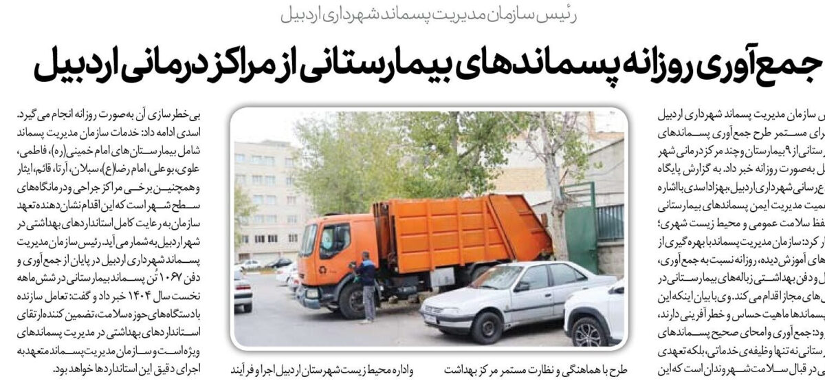 جمع‌آوری روزانه پسماندهای بیمارستانی از مراکز درمانی اردبیل