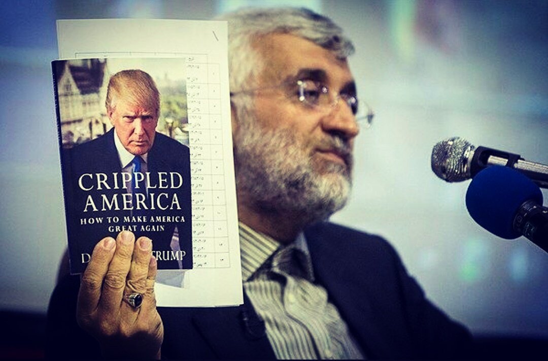 استفادهی او از کلمه آمریکای فلج، اشاره به نام کتابی از خود ترامپ دارد که ۸ سال پیش منتشر شده است. سعید جلیلی ۴ سال پیش در رابطه با این کتاب گفته بود: ترامپ ۴ سال پیش کتابی به نام «آمریکای افلیج» نوشت و در آن اذعان کرد رژیم آمریکا مفلوک است. اگر طبق تعبیر ترامپ، ساختار و بدنه رژیم آمریکا فلج بود؛ امروز مغز آن نیز دچار مشکل شده و حماقتهای ترامپ ناقوس اضمحلال رژیم افلیج آمریکا را به صدا درآورده است.