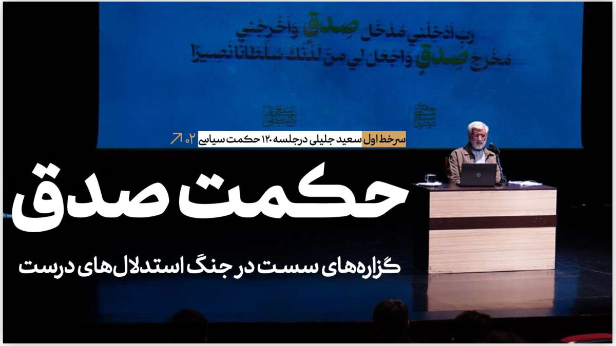 سعید جلیلی از حکمت صدق در سیاست گفت. صدق ارزشی است که کسی منکر آن نیست. چالش همین است؛ کسانی مدعی صدقاند که در ادعای خود صادق نیستند! قرآن میگوید خدا اصلا با همین صدق انسانها را امتحان میکند تا معلوم شود چه کسی صدق خود را در عرصۀ هستی به ظهور میرساند؟ « وَلَقَد فَتَنَّا الَّذينَ مِن قَبلِهِم ۖ فَلَيَعلَمَنَّ اللَّهُ الَّذينَ صَدَقوا وَلَيَعلَمَنَّ الكاذِبينَ» همین است که قرآن از خشم شدید خدا یاد میکند، آنجا که به مومنان خطاب میکند چرا چیزی میگویید که انجام نمیدهید: « يا أَيُّهَا الَّذينَ آمَنوا لِمَ تَقولونَ ما لا تَفعَلونَ كَبُرَ مَقتًا عِندَ اللَّهِ أَن تَقولوا ما لا تَفعَلونَ »