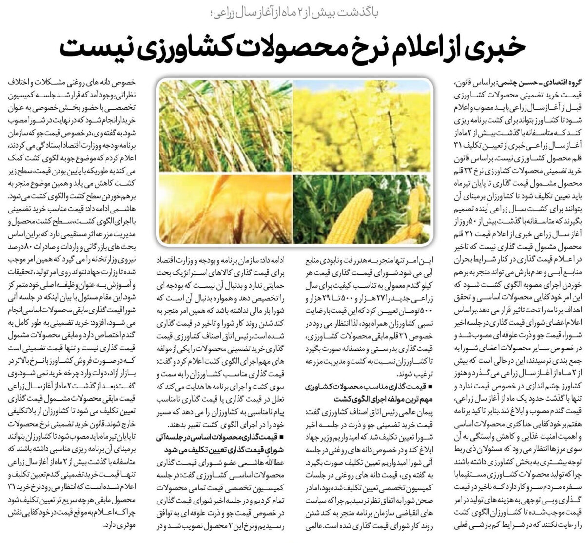 گروه اقتصادی ـ حسن چشمی: براساس قانون، قیمت خرید تضمینی محصولات کشاورزی قبل از آغاز سال زراعی باید مصوب و اعلام شود تا کشاورز بتواند برای کشت برنامه ریزی کند که متاسفانه با گذشت بیش از ۲ ماه از آغاز سال زراعی خبری از تعیین تکلیف ۳۱ قلم محصول کشاورزی نیست. براساس قانون خرید تضمینی محصولات کشاورزی نرخ ۳۲ قلم محصول مشمول قیمت گذاری تا پایان تیرماه باید تعیین تکلیف شود تا کشاورزان برمبنای آن بتوانند برای کشت سال زراعی آینده تصمیم بگیرند که متاسفانه با گذشت بیش از ۵۰ روز از آغاز سال زراعی خبری از اعلام قیمت ۳۱ قلم محصول مشمول قیمت گذاری نیست که تاخیر در اعلام قیمت گذاری در کنار شرایط بحران منابع آبی و عدم بارش می تواند منجر به برهم خوردن اجرای مصوبه الگوی کشت شود که این امر خودکفایی محصولات اساسی و تحقق اهداف برنامه را تحت تاثیر قرار می دهد.براساس اعلام اعضای شورای قیمت گذاری در جلسه اخیر شورا، قیمت جو و ذرت علوفه ای مصوب شد و در خصوص سایر محصولات اعضای شورا به جمع بندی نرسیدند، این درحالی است که بیش از ۲ ماه از آغاز سال زراعی میگذرد و هنوز کشاورز چشم اندازی در خصوص قیمت ندارد و تنها با گذشت حدود یک ماه از آغاز سال زراعی، قیمت گندم مصوب و ابلاغ شد.بنابر تاکید برنامه هفتم برخودکفایی حداکثری محصولات اساسی و اهمیت امنیت غذایی و کاهش وابستگی به آن سوی مرزها انتظار می رود که مسئولان ذی ربط توجه بیشتری به بخش کشاورزی داشته باشند چراکه تولید محصولات کشاورزی مستقیما با سفره مردم سرو کار دارد که تاخیر در قیمت گذاری و بی توجهی به هزینه های تولید در امر قیمت موجب شده تا کشاورزان الگوی کشت را رعایت نکنند که در شرایط کم بارشی فعلی این امر تنها منجر به هدررفت و نابودی منابع آبی می شود.شورای قیمت گذاری قیمت هر کیلو گندم معمولی به تناسب کیفیت برای سال زراعی جدید را ۲۷ هزار و ۵۰۰ تا ۲۹ هزار و ۵۰۰ تومان تعیین کرد که این قیمت با رضایت نسبی کشاورزان همراه بود، لذا انتظار می رود در خصوص ۳۱ قلم مابقی محصولات کشاورزی، قیمتگذاری بدرستی و منصفانه صورت بگیرد تا کشاورزان نسبت به کشت و مدیریت مزرعه ترغیب شوند.