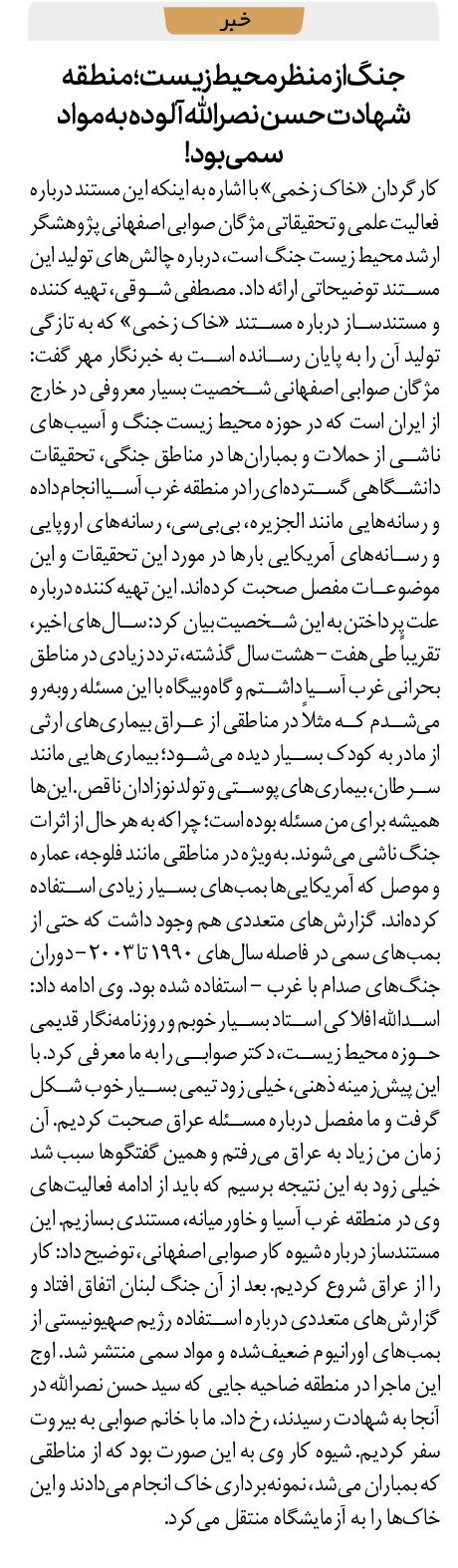 جنگ از منظر محیط زیست؛ منطقه شهادت حسن نصرالله آلوده به مواد سمی بود!