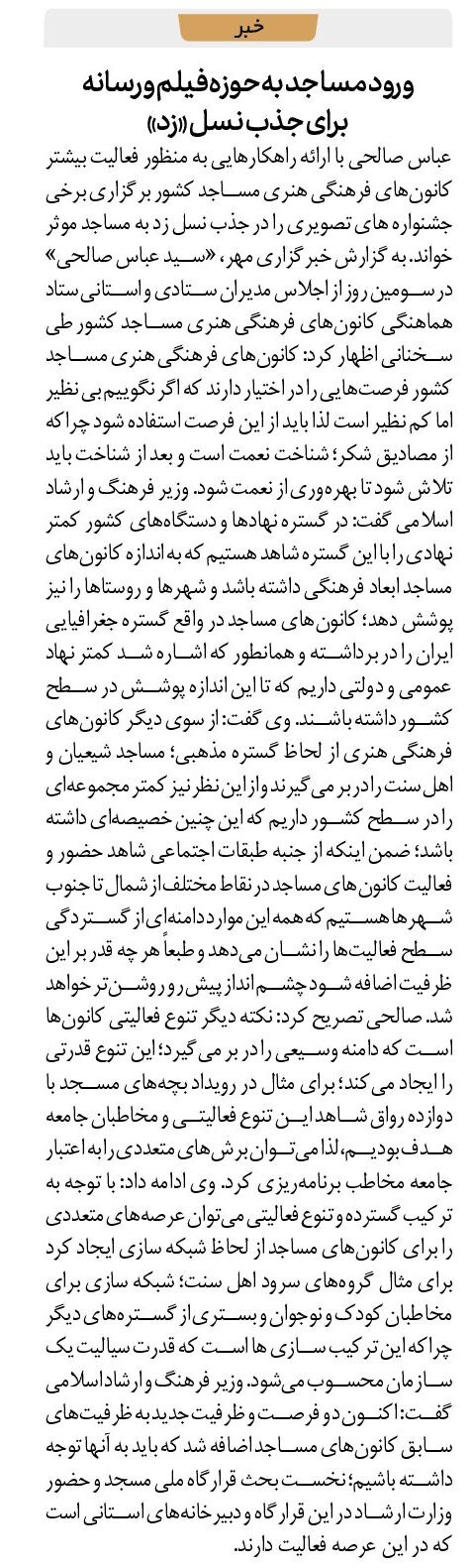 ورود مساجد به حوزه فیلم‌ و رسانه
