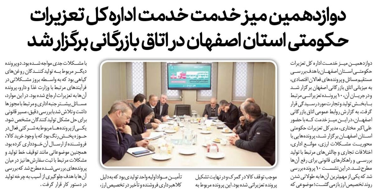 دوازدهمین میز خدمت اداره کل تعزیرات حکومتی استان اصفهان با هدف بررسی مستقیم مسائل و پروندههای فعالان اقتصادی، به میزبانی اتاق بازرگانی اصفهان برگزار شد و در جریان آن، ۱۰ پرونده تعزیراتی مرتبط با بخش تولید و تجارت مورد رسیدگی قرار گرفت. به گزارش روابط عمومی اتاق بازرگانی اصفهان، در این میز خدمت که با حضور علیاکبر مختاری، مدیرکل تعزیرات حکومتی استان اصفهان برگزار شد، پروندههایی با محوریت مشکلات ارزی، موانع اداری، اختلافات تجاری و چالشهای مرتبط با تولید بررسی و راهکارهای قانونی برای رفع آنها مطرح شد. در این نشست ۱۰ پرونده بررسی شد که یکی از مهمترین آنها به طولانی شدن روند تخصیص ارز بازمیگشت؛ موضوعی که موجب توقف کالا در گمرک و در نهایت تشکیل پرونده تعزیراتی شده بود. این پرونده مربوط به تأمین مواد اولیه واحد تولیدی بود که به دلیل کلاهبرداری فروشنده و تأخیر در تخصیص ارز، با مشکلات جدی مواجه شده بود. دو پرونده دیگر مربوط به تولیدکنندگان روغنهای گیاهی بود که به واسطه بروز مشکلاتی در فرآیندهای مرتبط با وزارت غذا و دارو، پرونده آنها به تعزیرات ارجاع شده بود. در این موارد، مسائل بیشتر جنبه اداری و مرتبط با مجوزها داشت و تلاش شد با بررسی دقیق، مسیر قانونی برای حل مشکل تولیدکنندگان مشخص شود. یکی از پروندهها مربوط به شرکتی فعال در حوزه پخش رنگ بود که با وجود خرید کالا، فروشنده از ارسال آن خودداری کرده بود. همچنین موضوعاتی مانند توقیف خط تولید و مشکلات مرتبط با ثبت سفارشها نیز در میان پروندههای بررسیشده مطرح شد که بررسی آنها با هدف جلوگیری از آسیب به چرخه تولید در دستور کار قرار گرفت .