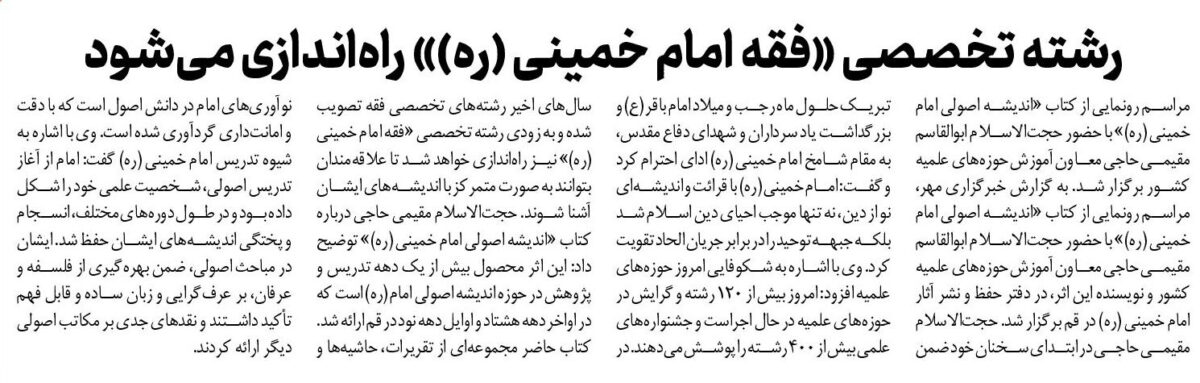 مراسم رونمایی از کتاب «اندیشه اصولی امام خمینی (ره)» با حضور حجتالاسلام ابوالقاسم مقیمی حاجی معاون آموزش حوزههای علمیه کشور برگزار شد. به گزارش خبرگزاری مهر، مراسم رونمایی از کتاب «اندیشه اصولی امام خمینی (ره)» با حضور حجتالاسلام ابوالقاسم مقیمی حاجی معاون آموزش حوزههای علمیه کشور و نویسنده این اثر، در دفتر حفظ و نشر آثار امام خمینی (ره) در قم برگزار شد. حجتالاسلام مقیمی حاجی در ابتدای سخنان خود ضمن تبریک حلول ماه رجب و میلاد امام باقر (ع) و بزرگداشت یاد سرداران و شهدای دفاع مقدس، به مقام شامخ امام خمینی (ره) ادای احترام کرد و گفت: امام خمینی (ره) با قرائت و اندیشهای نو از دین، نه تنها موجب احیای دین اسلام شد بلکه جبهه توحید را در برابر جریان الحاد تقویت کرد. وی با اشاره به شکوفایی امروز حوزههای علمیه افزود: امروز بیش از ۱۲۰ رشته و گرایش در حوزههای علمیه در حال اجراست و جشنوارههای علمی بیش از ۴۰۰ رشته را پوشش میدهند. در سالهای اخیر رشتههای تخصصی فقه تصویب شده و به زودی رشته تخصصی «فقه امام خمینی (ره)» نیز راهاندازی خواهد شد تا علاقهمندان بتوانند به صورت متمرکز با اندیشههای ایشان آشنا شوند. حجتالاسلام مقیمی حاجی درباره کتاب «اندیشه اصولی امام خمینی (ره)» توضیح داد: این اثر محصول بیش از یک دهه تدریس و پژوهش در حوزه اندیشه اصولی امام (ره) است که در اواخر دهه هشتاد و اوایل دهه نود در قم ارائه شد. کتاب حاضر مجموعهای از تقریرات، حاشیهها و نوآوریهای امام در دانش اصول است که با دقت و امانتداری گردآوری شده است. وی با اشاره به شیوه تدریس امام خمینی (ره) گفت: امام از آغاز تدریس اصولی، شخصیت علمی خود را شکل داده بود و در طول دورههای مختلف، انسجام و پختگی اندیشههای ایشان حفظ شد. ایشان در مباحث اصولی، ضمن بهرهگیری از فلسفه و عرفان، بر عرفگرایی و زبان ساده و قابل فهم تأکید داشتند و نقدهای جدی بر مکاتب اصولی دیگر ارائه کردند.