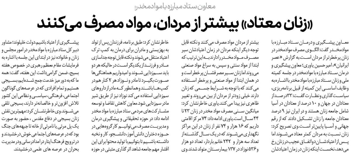 «زنان معتاد» بیشتر از مردان، مواد مصرف می‌کنند